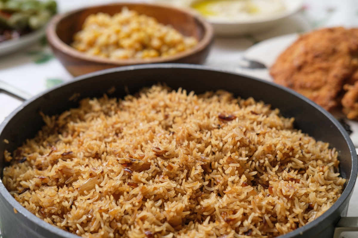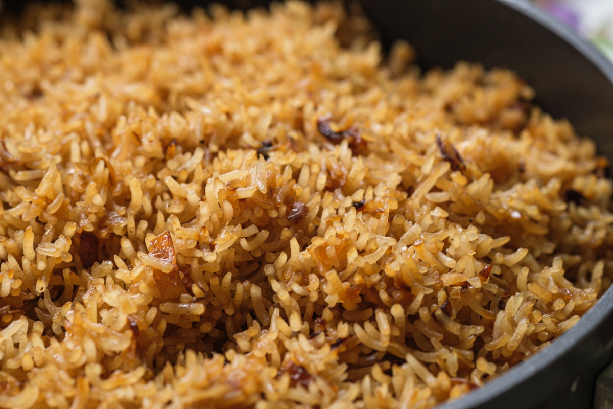2 כוסות אורז בסמטי/פרסי/יסמין (שטוף היטב מושרה במים קרים שעה ואז במסננת מסונן מהמים)