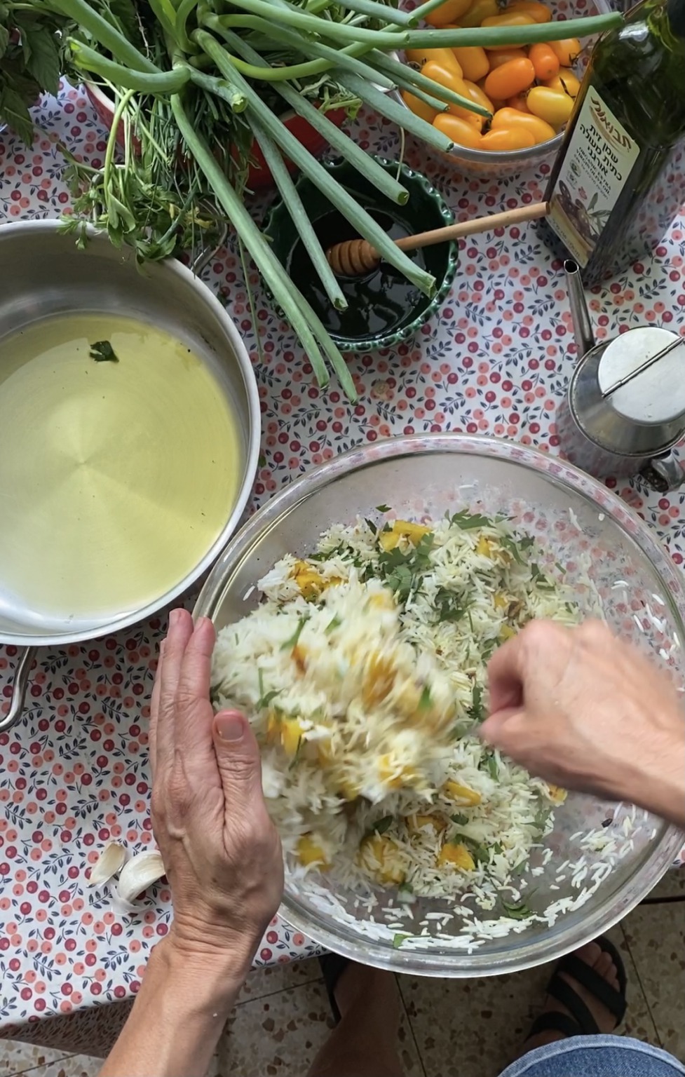 “אתה יודע מה, גם אני הכנתי אתמול אורז פרסי הודי” אני מתערבבת בשיחה
