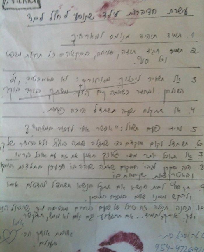 מוצאת כל מיני פתקים עם שגיאות כתיב מתוקות של קשר מסוג חדש עם נצמדים שלמדו לכתוב, רצפטים של עוגות שממש אהבתי בכתב יד של השכנה מהבית הקודם, של אמא שלי, של מכרה רחוקה..והנה אני נתקלת בהנחיות שהעברתי לילד המתבגר שלי, כשנסע לוושינגטון לבד לבד לבקר חבר בחופש הגדול..עברו שש שנים מאז, אבל ההוראות למתבגר קבילות לכל חקלאי פיקח.