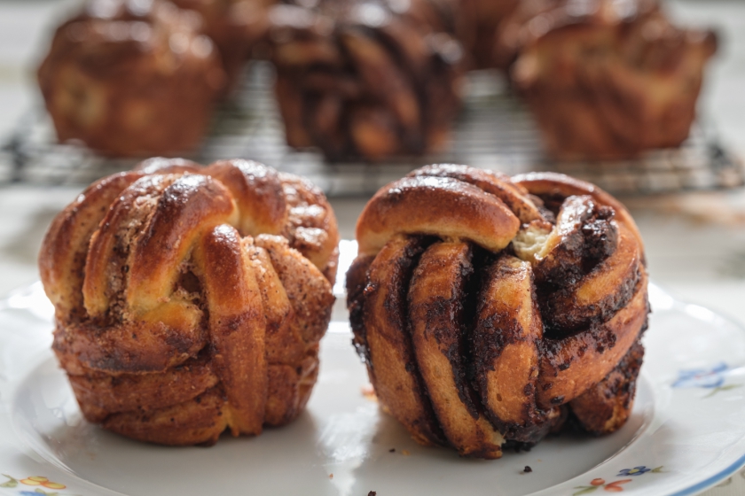 שיטה 2 (פשוטה יותר): על משטח מקומח נרדד את הבצק ליריעה דקה דקה, נפזר מוקדי חמאה ונמרח קלות נפזר ממרח קינמון בכמה מוקדים ונמרח, נגלגל בעדינות לנחש ונניח בתבנית עגולה ומשומנת איך שבא.