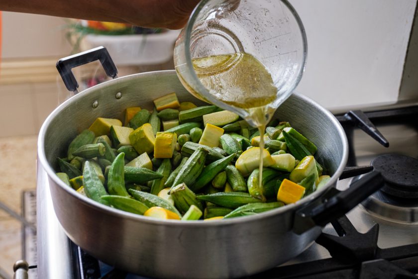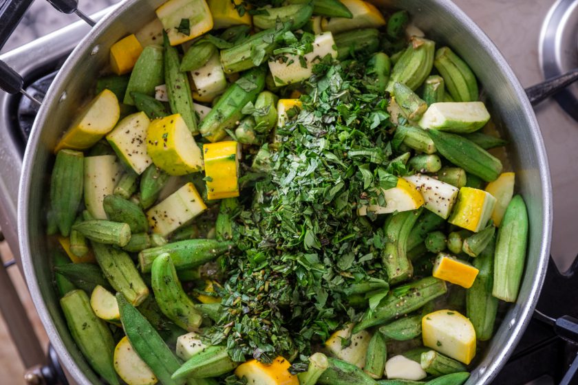 2.נערבב: כוס מים עם מיץ מלימון אחד עסיסי כפית מלח ורבע כוס שמן זית, נוסיף ליפי הבמיה. ננמיך אש, נכסה סיר (כ-10 דק’)