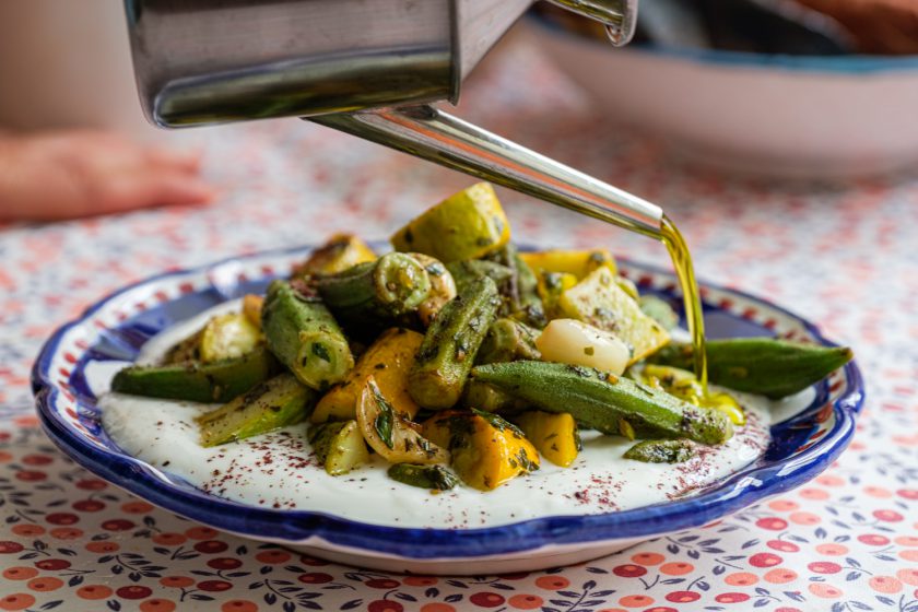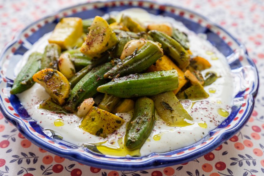 5. נצלחת מעל יוגורט עם שום כתוש, נעטר בסומק ונזליף עוד מעט שמן זית