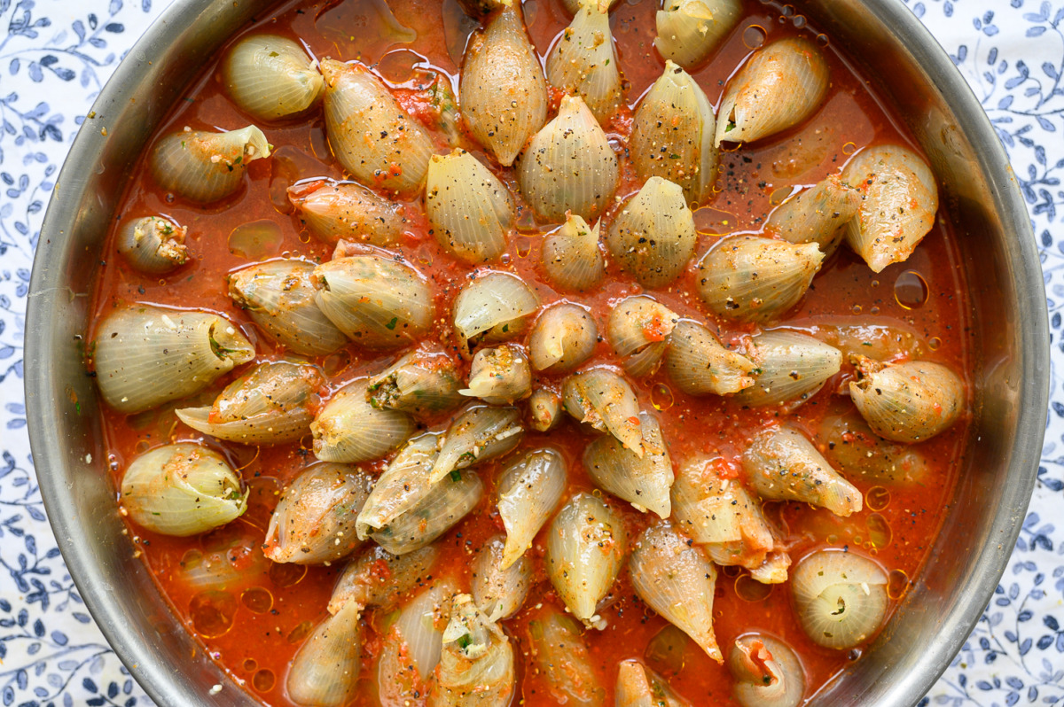 הרכבה: נמלא כל גלד בצל עם כפית מילוי (לא להתפתות ולדחוס מדי)