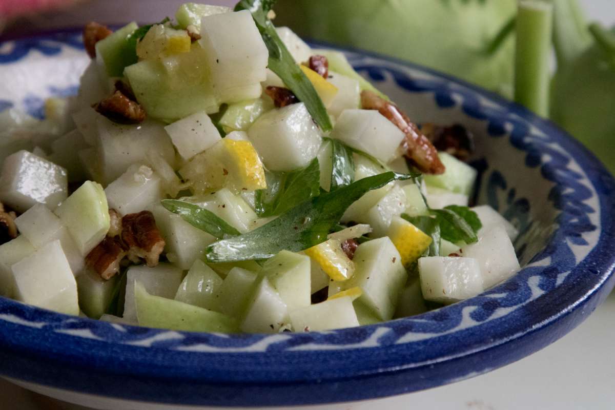 3 תפוחים ירוקים קלופים חתוכים קוביות