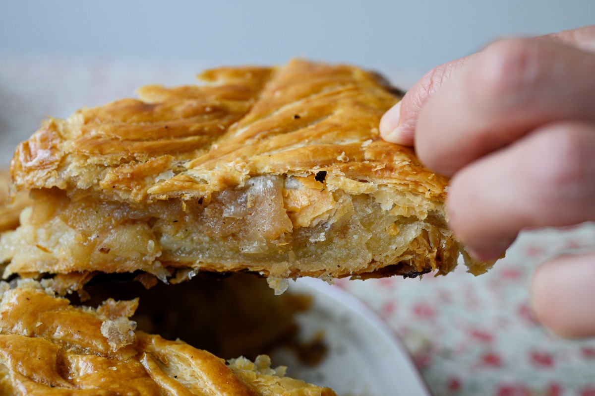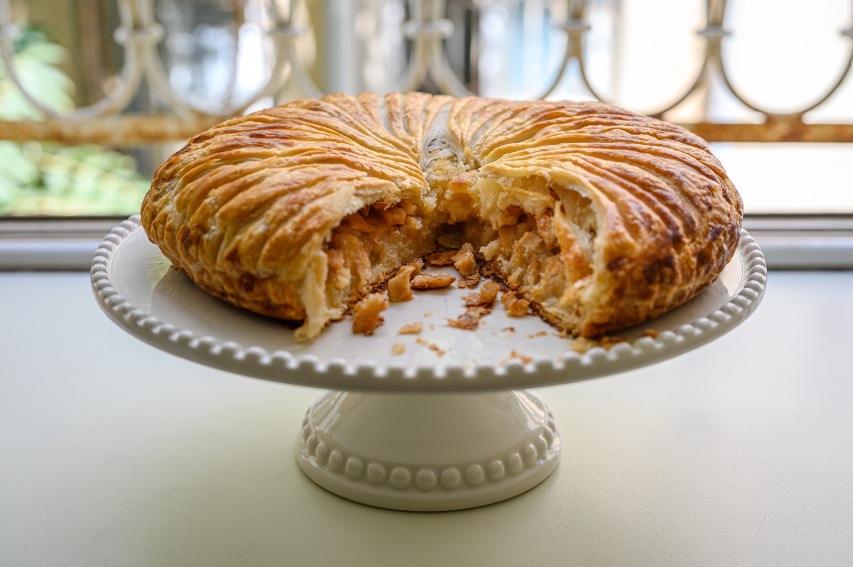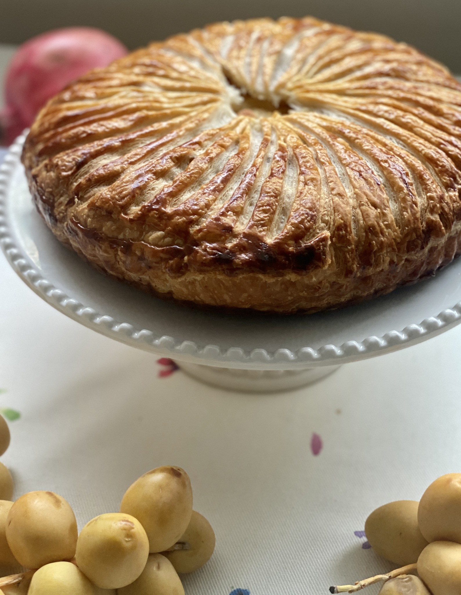 תקשיבו רגע, זו עוגה שאני מחייבת אתכם להכין, היא כה קלה והיא ככ טעימה. בצק עלים מוכן צ’יק צ’אק קרם שקדים מעליו תפוחים מקורמלים נותנת בפריזורה חשה עצמי בסקיאט. בכלל, אני מכינה את הגאלט/פיטיבייה הזה במבטא צורפתי ועם שיק של מאפיית בוטיק. ממליצה להרכיב אותו ולהכניס לתנור ממש לפני כניסת ראש השנה. מושלם. מי שמכיר את עוגת המלכים, יודע שנהוג לטמון בה איזה בובה קטנה או כתר ומי שמוצא אותו הוא מלך ליום אחד, שזה נחמד, אבל אני אמא יהודיה חרדתית, אני רואה קדימה, איך מישהו בולע ומשתנק וצריך לעשות לו היימליך ואני צועקת “יש בקהל רופא רופא” והיא צועק עלי “מה היה דחוף לך לדחוף בובה למאפה?”. אז בלי. או עם. זה כל כך טעים.