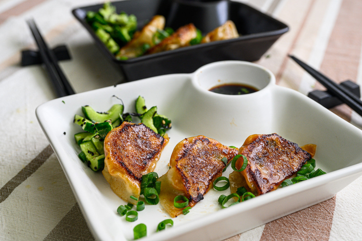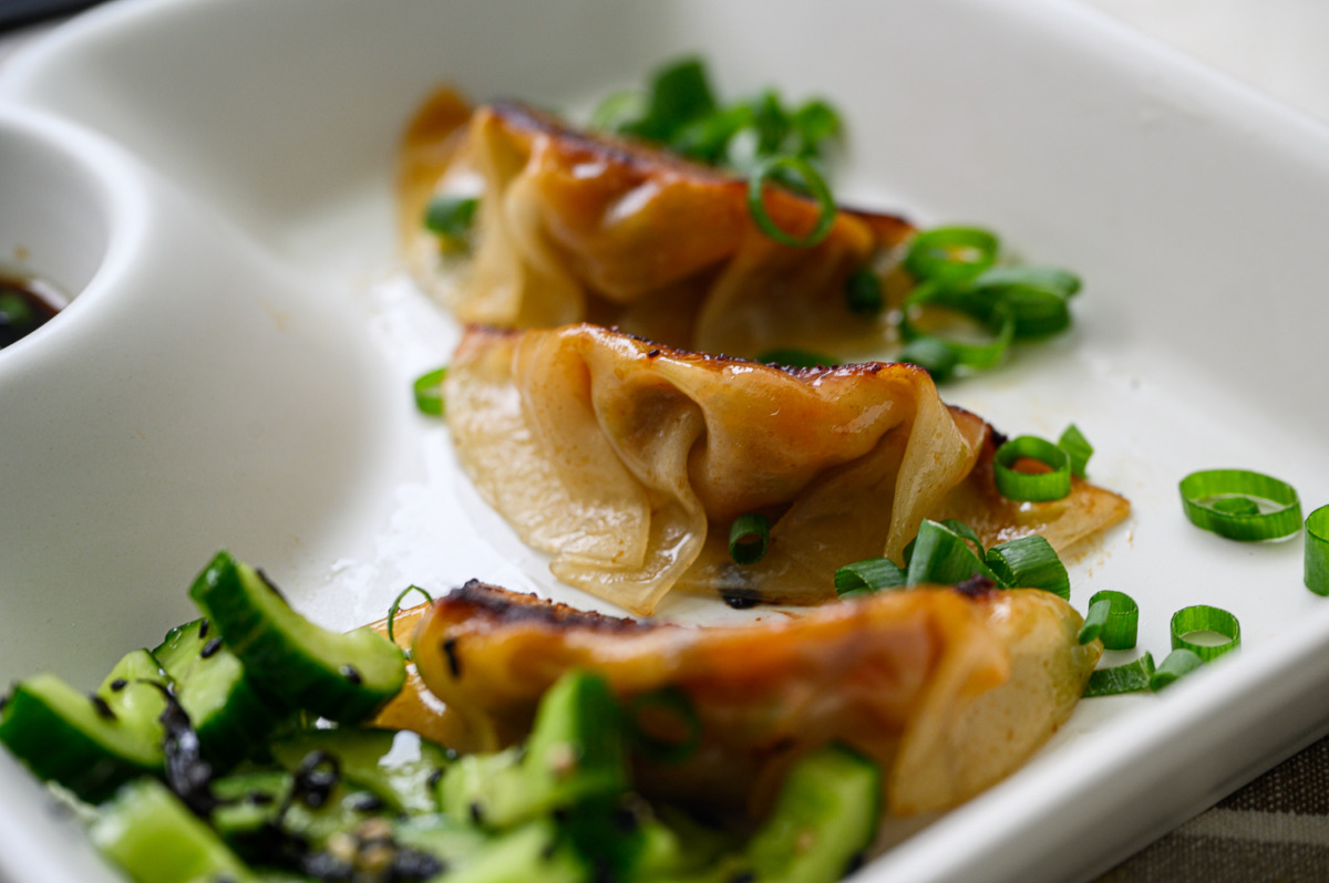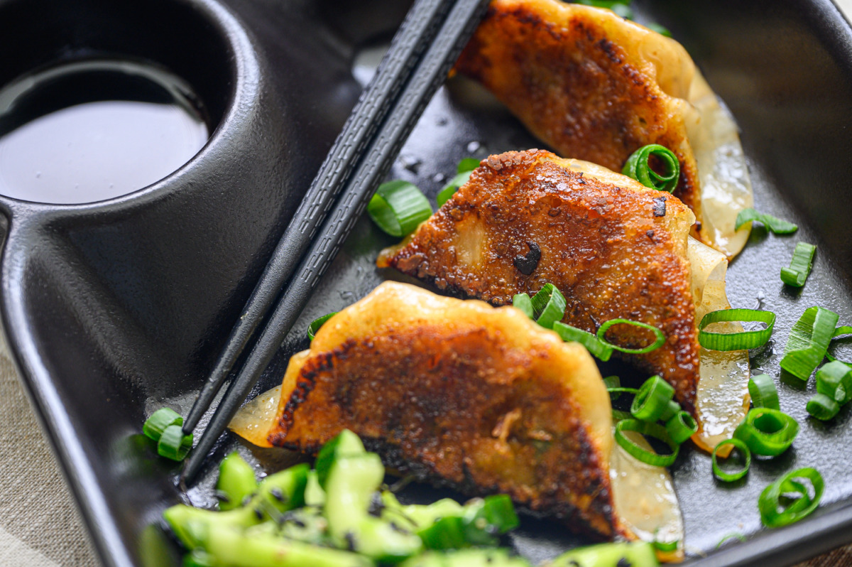 עם מעט שמן (2 כפות) על להבה גבוהה, נניח את הגיוזות שלנו איך שבא (כל נגלה כמה יחד), נכסה מחבת עם מכסה לדקה אחת בדיוק, מוסיפה ¾ כוס מים ומכסה מחבת ל3 וחצי דקות. ולבסוף יוצקת כף אחת של סויה ומכסה ל30 שניות. מכבה. משאירה את הגיוזות לעוד 2 דקות על הכיריים החמימים ללא מכסה ומוציאה אותן לכלי הגשה.