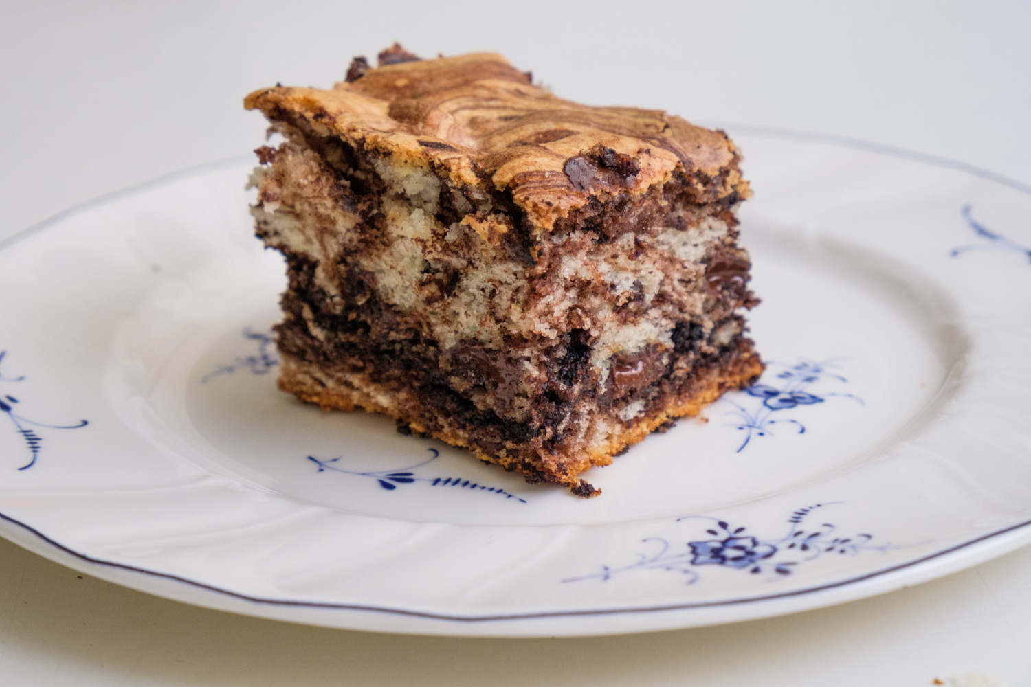 נמרח עלה מלבני בשוקולד ונפזר אגוזים ממעל