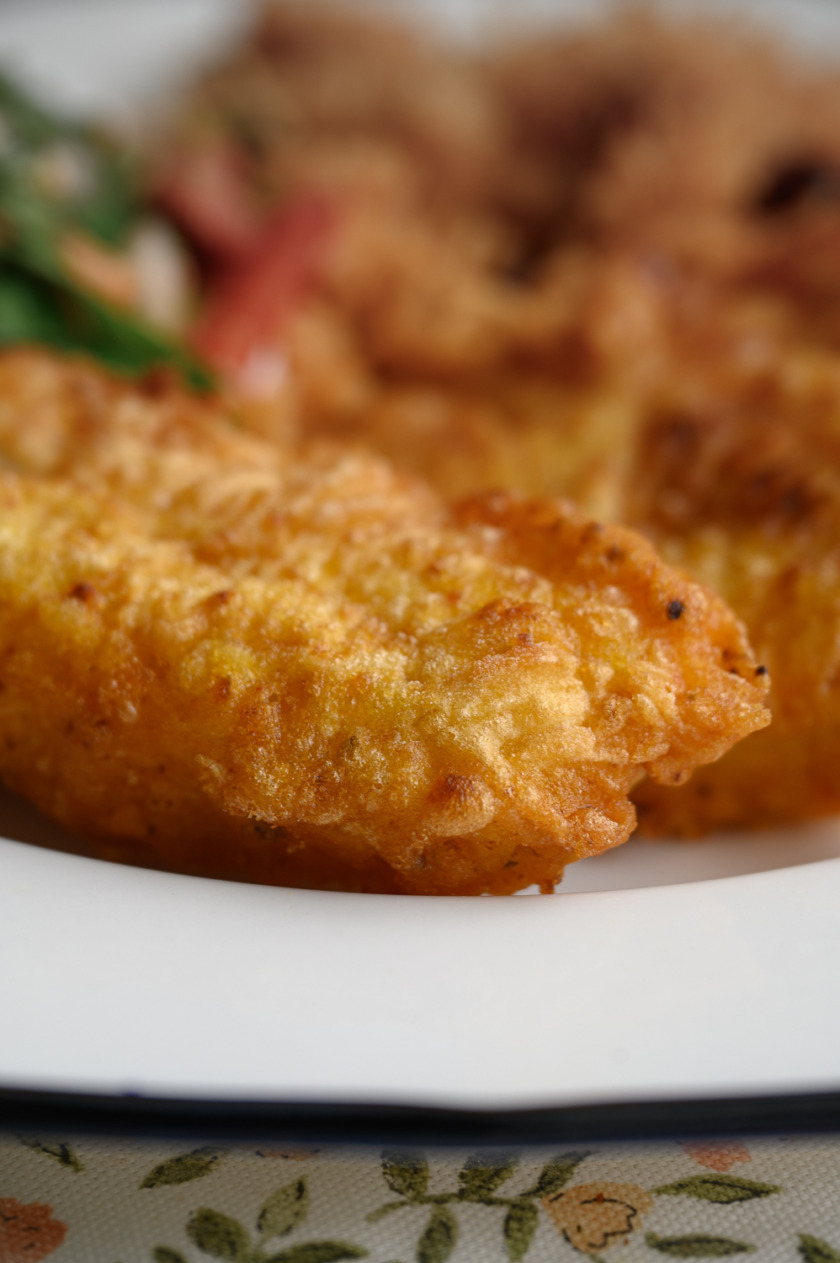 לטגן בשמן עמוק!! בשום אופן לא לאפות – הנתחים לא יוצאים שמנוניים בגלל השמן העמוק והציפוי.