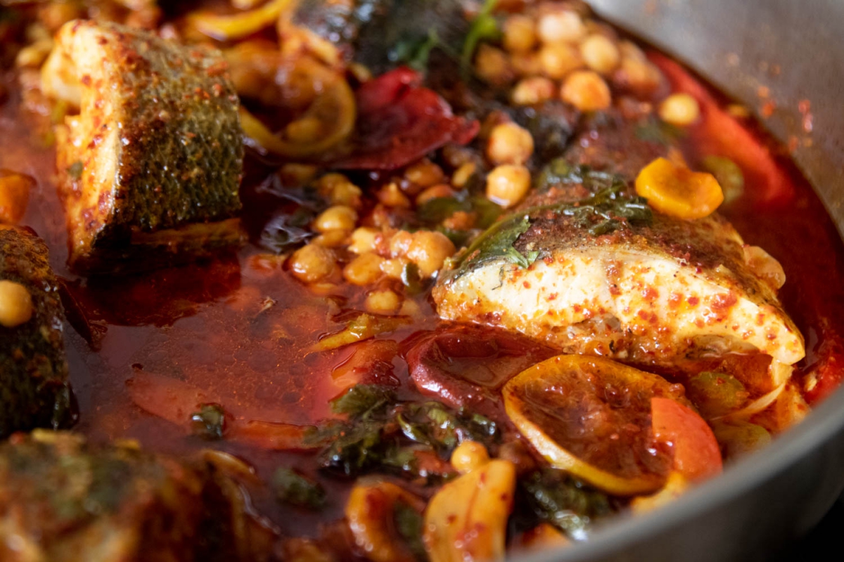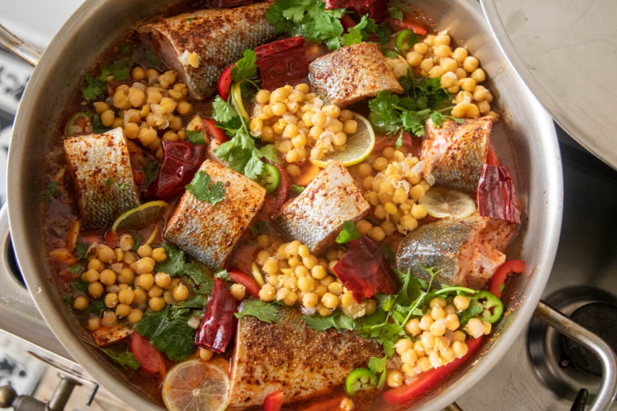 אפשר להוסיף עם הירקות (בסעיף 2) כוס חומוסים מבושלים ולפזר בינות הדגים.