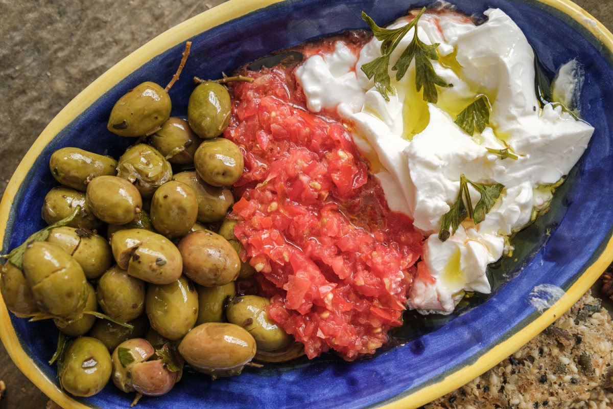 הצעת הגשה: אורנה ואלה סטייל: עגבניות מרוסקות, זיתים טובים ולבנה