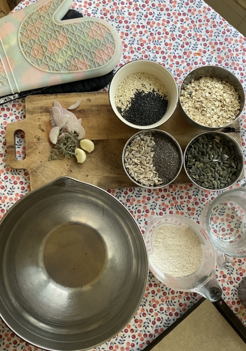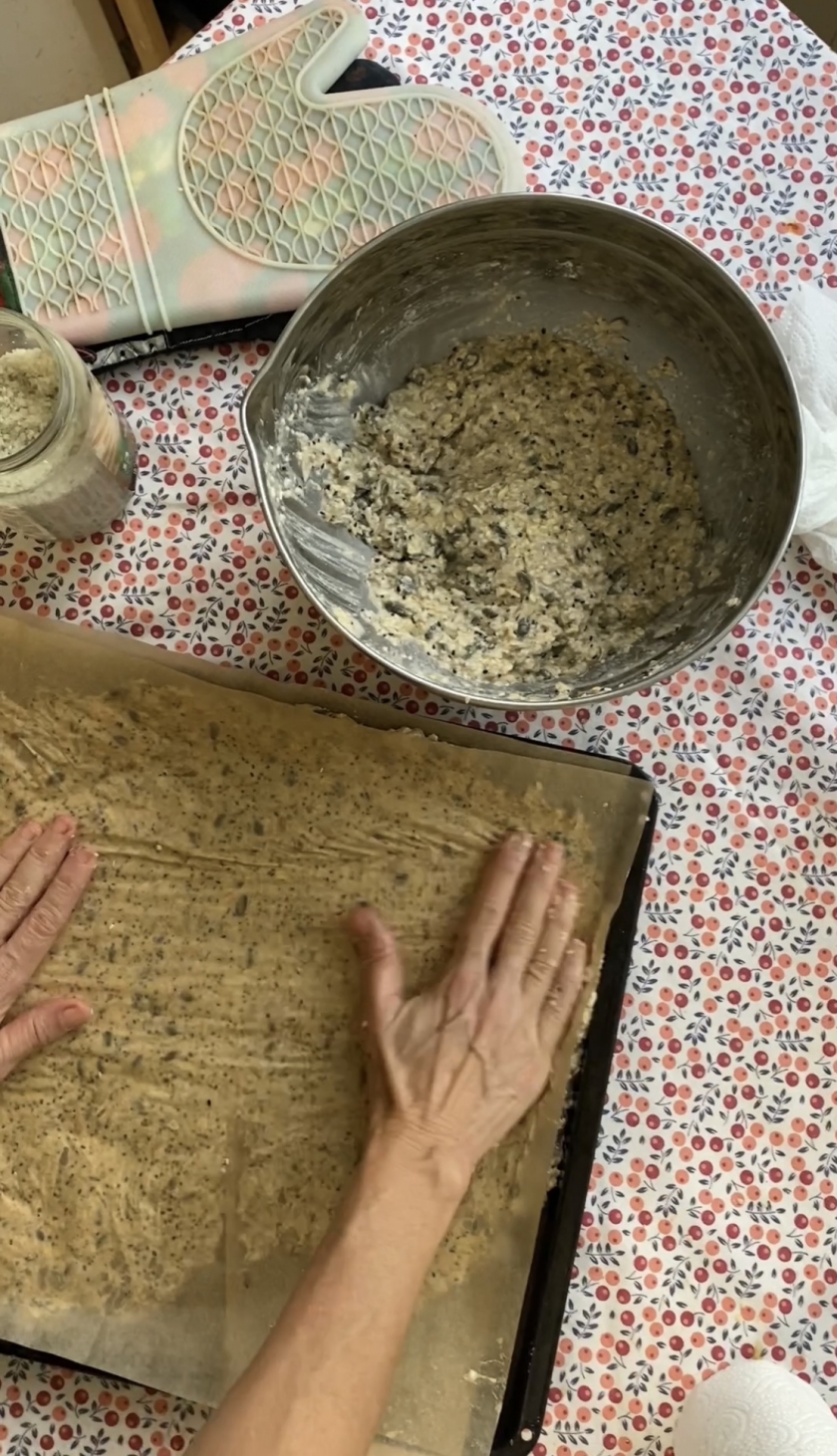 אחותי שיר, שהיא באמת מוכשרת בכל כך הרבה דברים, גם בבישול, הכינה את הקרקרים האלה וזהו זה.נשבתי והבנתי שאני מיד מכינה כמובן שהיא .והשתמשה בגי, צ’יה , פסיליום ועוד דברים נפלאים של אנשי הרוח , היוגה והקלאס “יה אחותי, מאיפה אני אביא עכשיו פסיליום? מה אני חיה בקליפורניה האורגנית או בתל אביב האורבנית?”