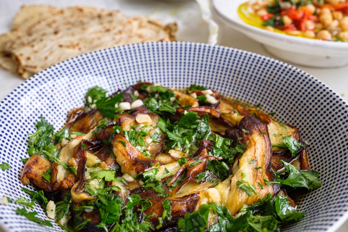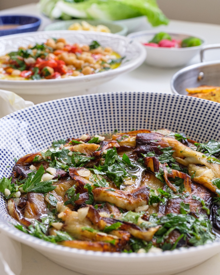 2 חצילים יפים (חציל יפה הינו חציל מבריק וקל שפטמתו בצבע ירקרק ולא חום או אפרפר)