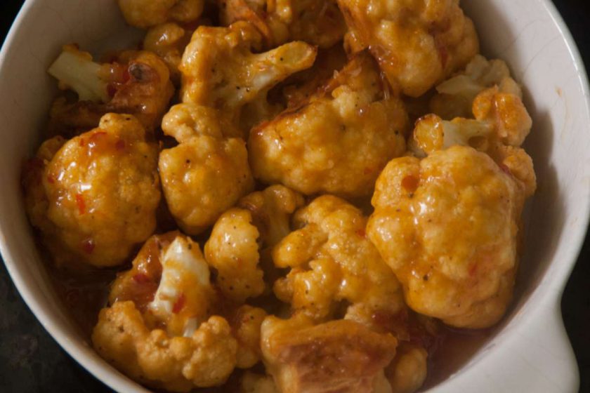 כרובית אפויה עם רוטב צ’ילי מתוק.