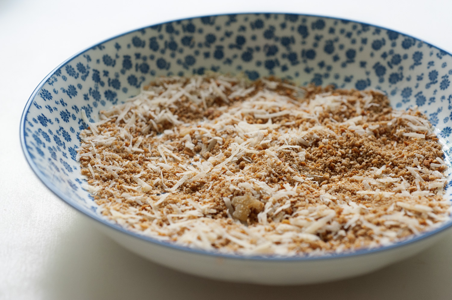 מפזרים את תערובת פירורי הלחם והפרמז’ן איפה שנתפס, לא להתאמץ מדי ולהפוך ולשגע .