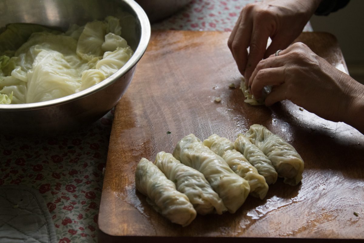 2. ניקח עלה כרוב, בזהירות ננקה את “הוריד” הראשי, העורק הקשה, נערסל כף יפה של מלית ונגלגל כמו מעטפת.