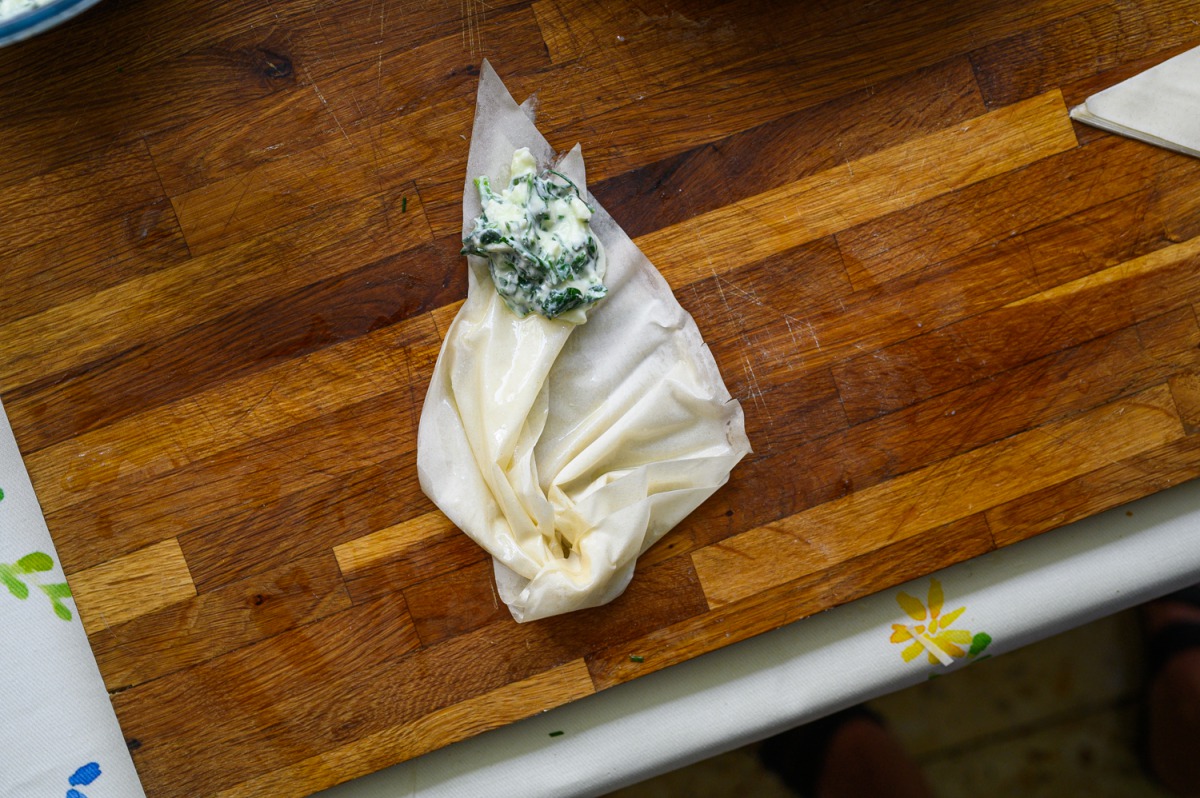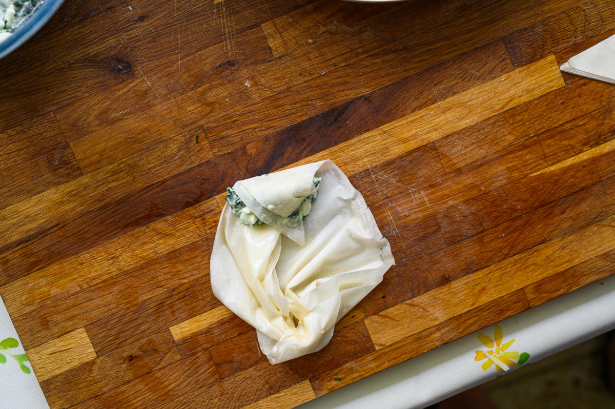 זה מאפה שאכלתי אצל יורגס, קתרינה, יאניס, אמא של יאניס, אצל מי לא? העניין הוא קיפול הפילו, האוריגמי הזה שראיתי בשכונת היוקרה שאני מסתובבת בה, יו טיוב. צורת ההכנה של הסיגרים הצפופים האלו, מיד התחשק לי גם את הקמטוטים המזמינים, שכל אחד שולף מתבנית סיגר תרד. אתמול היו אצלי הילדים של אחותי שהם חצי יוונים תכלס, כל אחד בתורו אמר: “יותר טעים מזה שאמא של יאניס מכינה”, “וואו זה יותר טעים מאלו של קתרינה”. כן כן כן, הסלט היווני, הכי טעים שאכלתי היה בארץ. אין מה לעשות, לא יעזור, הישראלים מבשלים טוב יותר את יוון.