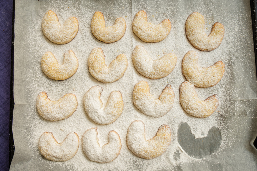 4. עם כף מגליצ’ים לכל שקע מן הבלילה, מכניסים לתנור 170 מעלות ל5 דקות מלאות, מוציאים ומוסיפים את השטרוייזל