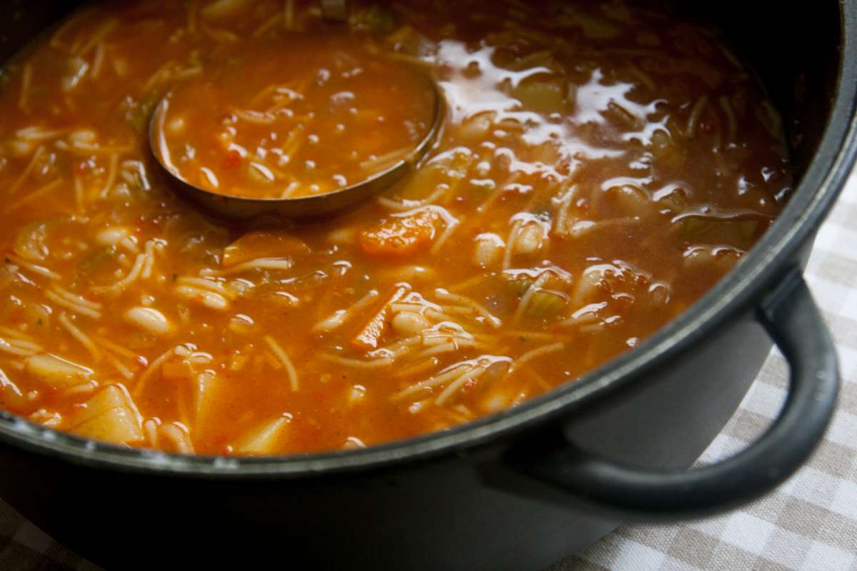 נטגן את הבצל בשמן זית נוסיף את שאר הירקות בהדרגה: דלעת, קישוא, תפוח אדמה, סלרי, עגבניה שורש פטרוזיליה, נוסיף תבלינים: כורכום/כמון/פפריקה/ג’ינג’ר, שום חתוך או כתוש, נוסיף את החומוסים והעדשים נמלא במים (או ציר עוף) כ-2 וחצי ליטר, נערבב טוב, נביא לרתיחה, ננמיך את האש ונכסה את הסיר, אחרי כ40 דק’ נוסיף את התרד, המלח, הכוסברה והפטרוזיליה, אחרי עוד חצי שעה נוסיף את חופן אטריות. נתקן תיבול. אפשר מי שאוהב שפריץ של לימון. מוסיף המון.