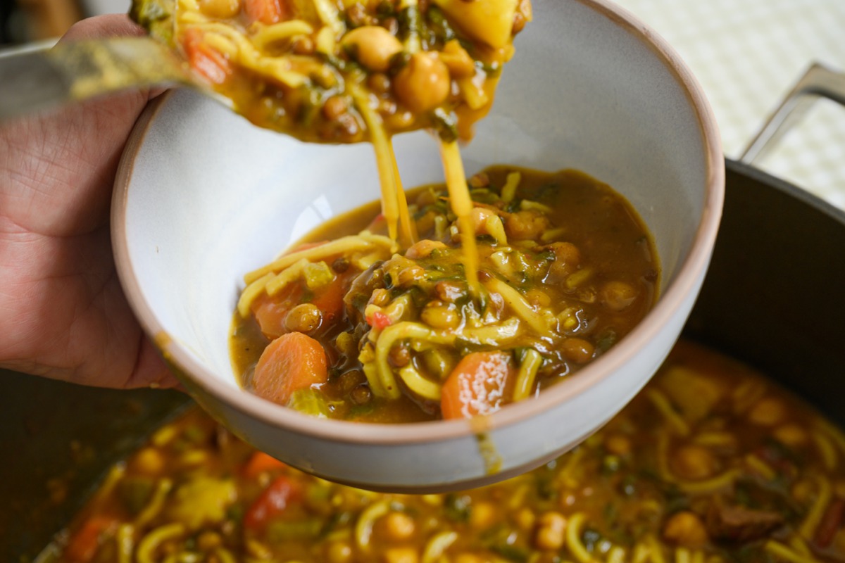 זה מרק נפלא, שפותח צ’אקרות, מחמם לבבות ומזין בצורה מושלמת את הגוף שלנו. זה בעצם מרק גולאש של העדה המרוקאית, טיגון בצל עם קוביות בשר, תבלינים חמים, בישול איטי איטי, קטניות ואטריות, מה כבר יכול להיות? טעים! רק טעים.