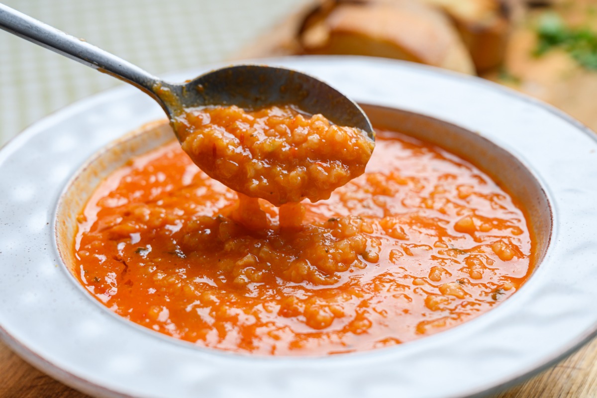 זוהי ארוחה שמחה וסמיכה של עגבניות נמסות ואורז טעים. מאוד חשוב זן העגבניות הן שנותנות את הטון והטעם. לא לוותר ולהחליף באחר. והדבר האהוב עלי בישול העגבניות עם השום והבצל ללא מים בכלל איזה טעם מרוכז. זה מה שהופך את כל העסק ממרק למרק פגז!
