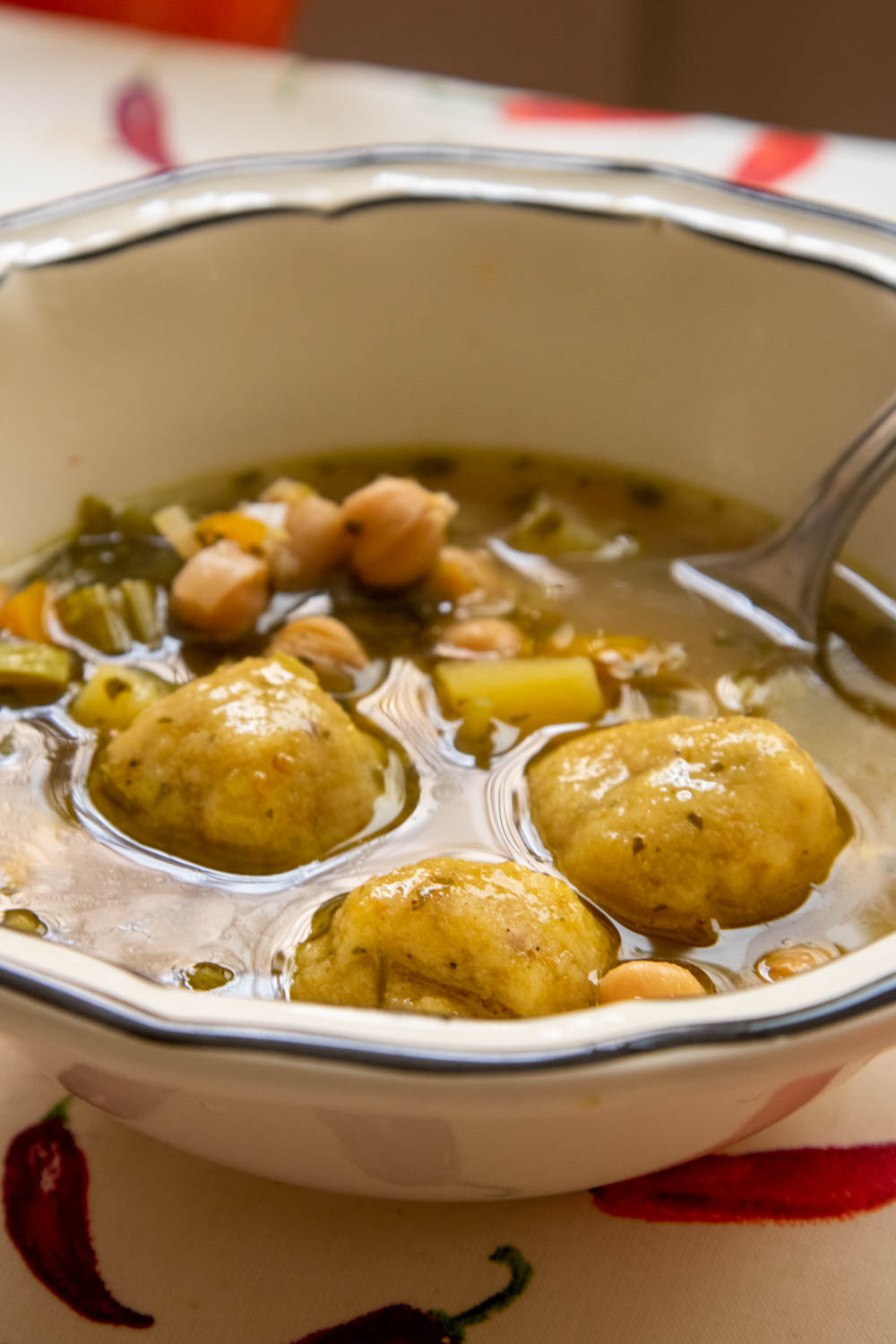 4. נכין קובות קטנות בגודל מסטיק עגול  ונחליק לתוך המרק המבעבע. ניתן למרק עוד חצי שעה על אש קטנה, נכבה נוסיף מיץ מלימון שלם (מי שלא מספיק לו החמוץ, יוסיף עוד מיץ לימון) ונתקן תיבול אם צריך.