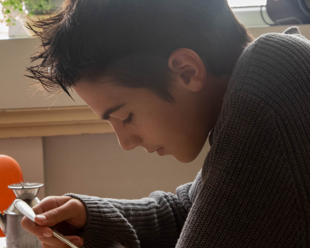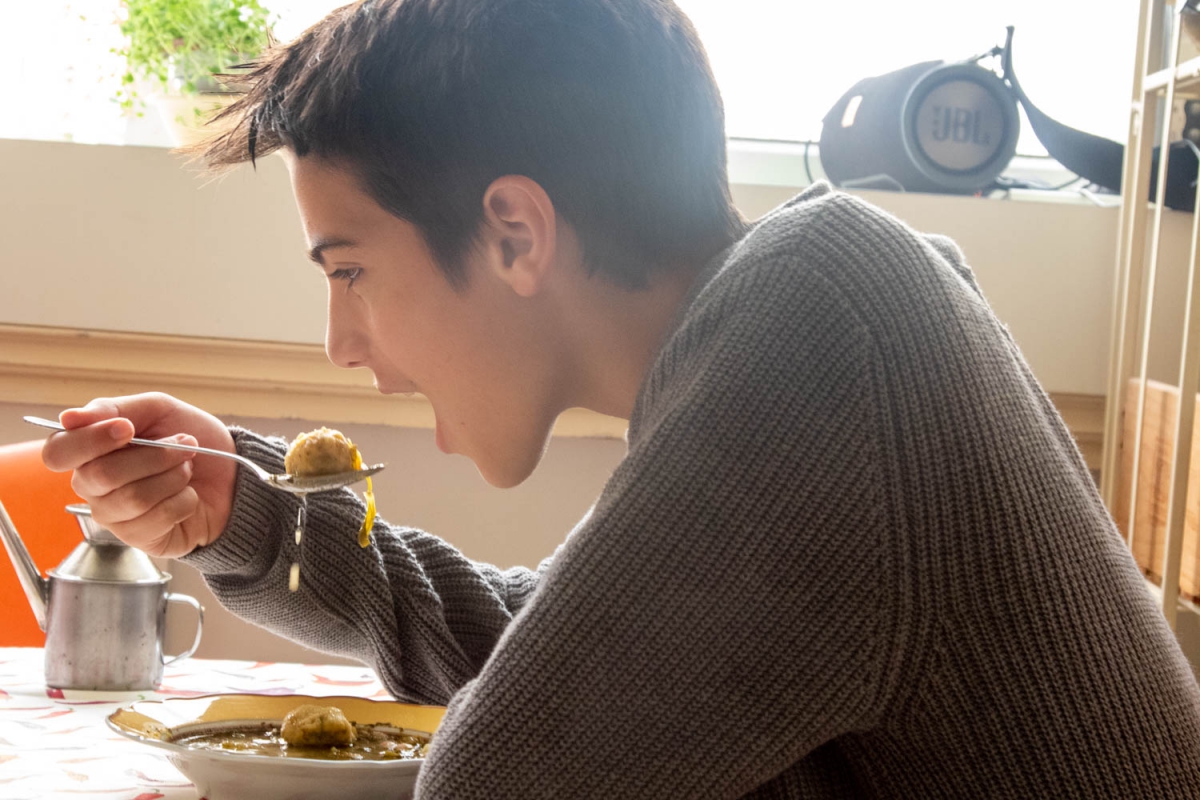 כולם יאכלו אותו דבר. אותו סיר. אותה קערה. רק הוא יהיה חייב להפריד את הפסטה מהרוטב, את הקשה מהרך, בלי הצהוב של הביצה, בלי הלבן של הלחם, שהשניצל לא יגע בפירה, שהפירה יהיה בלי גושים, אבל לא חלק. אם אפשר את המרק בלי מים רק שקדים, את הברוקולי: “אני טועם רק אם תחליפי לו את הצבע מירוק”.
