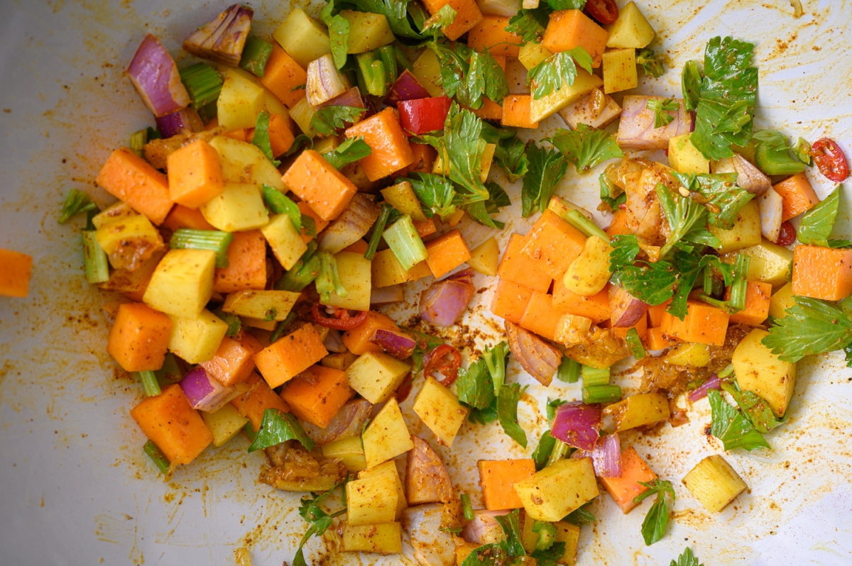 חצי כוס קוביות קטנות של בטטה או דלעת