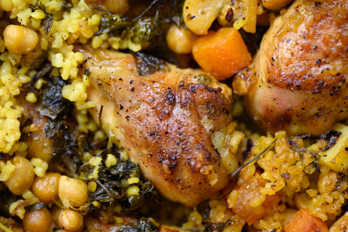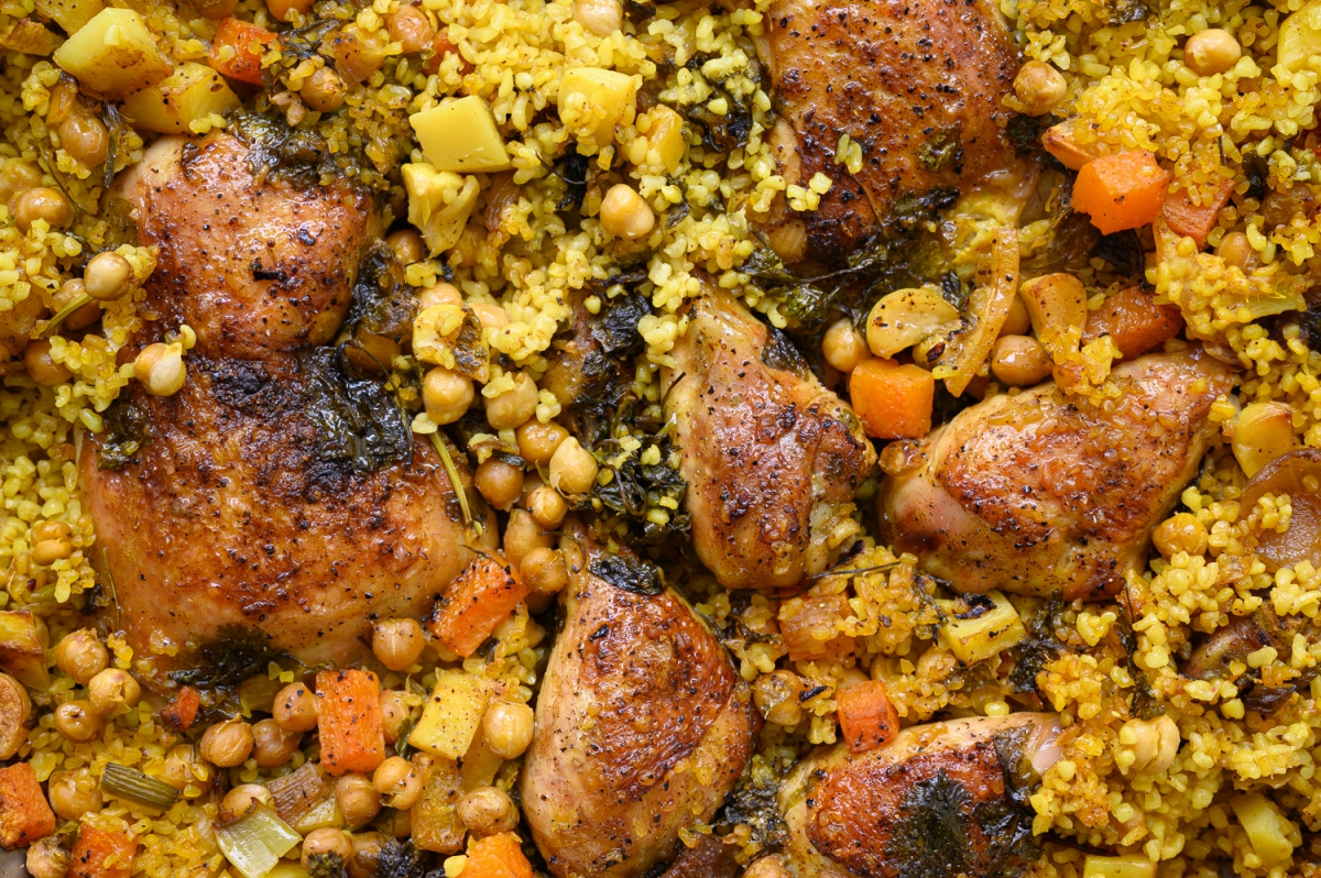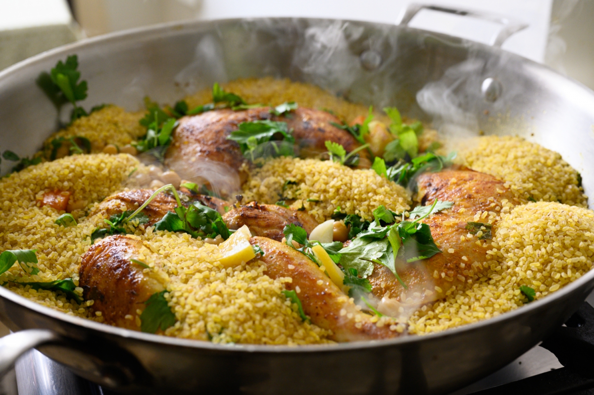 סיר עוף מוש עם בורגול ולימון כבוש