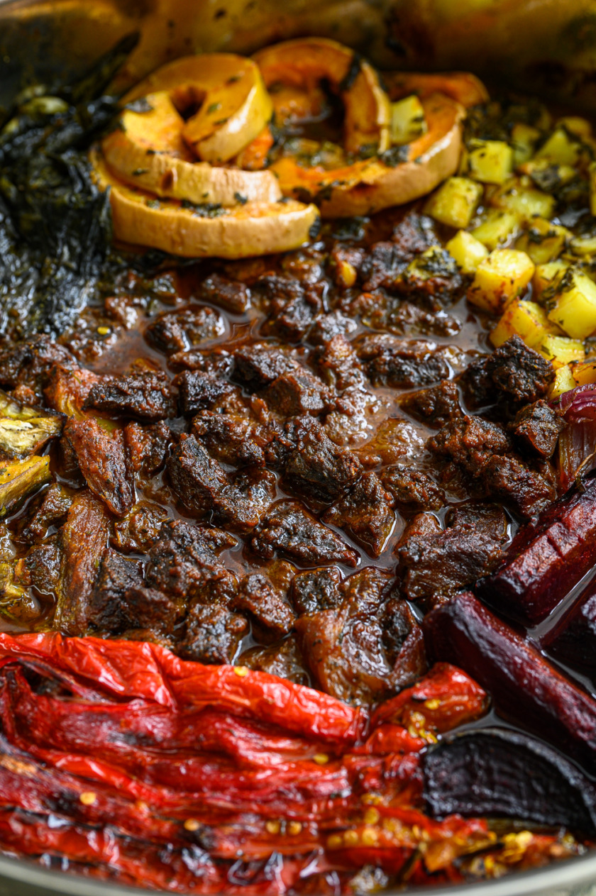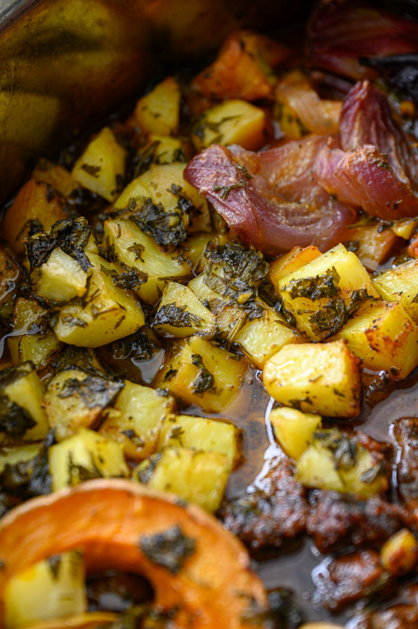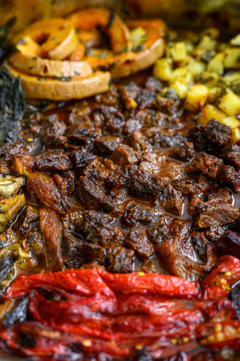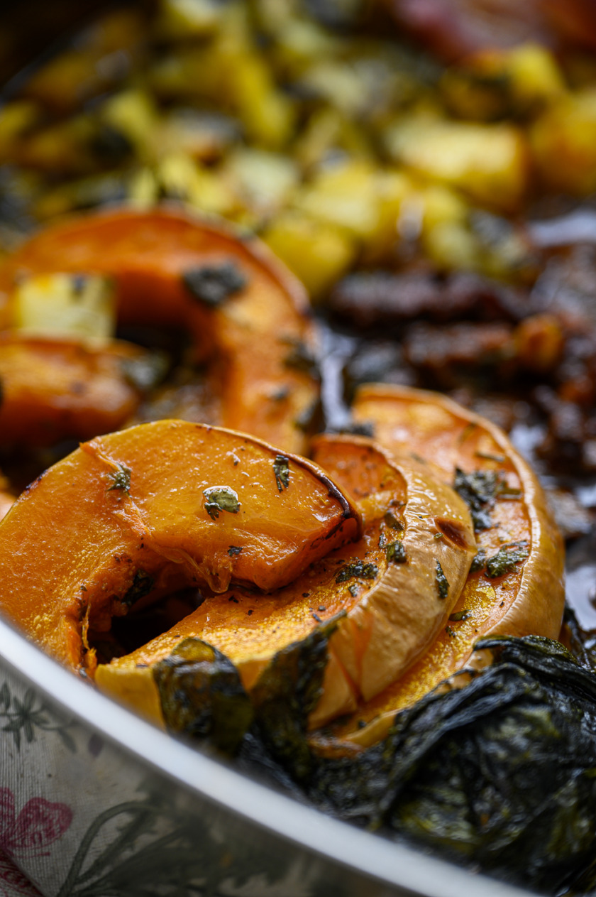 למרינדת תפחי אדמה, דלעת ערמונים, חציל ופלפלים