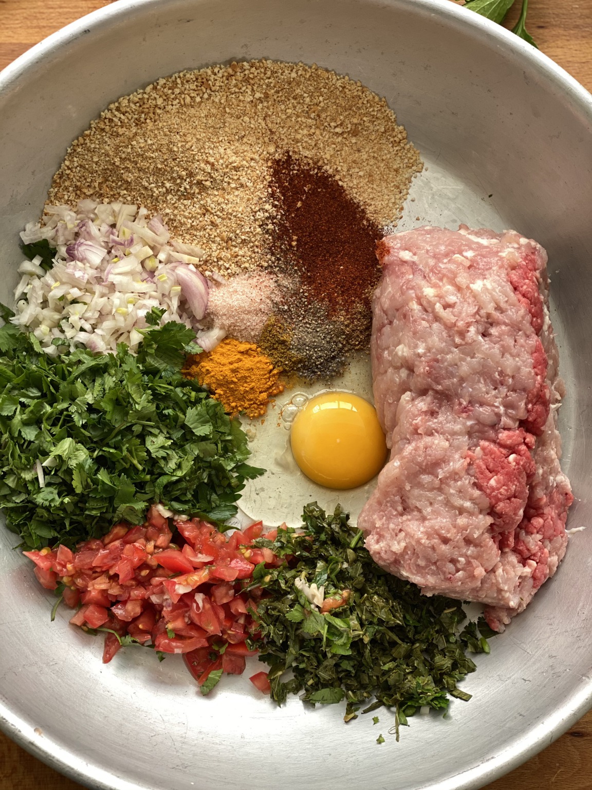 700 גרם בשר טלה טחון (או כל בשר שאוהבים עם טיפי שומן, אני שמתי 600 גרם בשר פרגית טחון עם 100 גרם טלה)