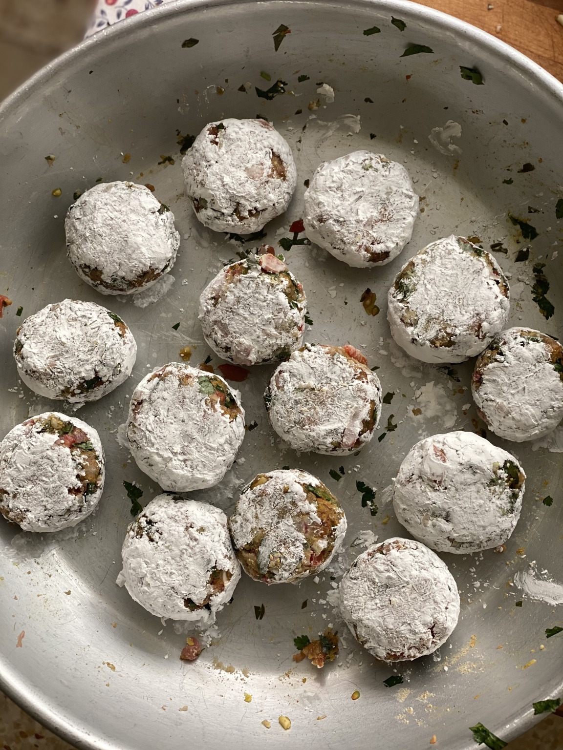 אלה הקציצות שלי לקולקציית אביב 2021, זה אולי הקציצות הטעימות ביותר שהכנתי השנה והכנתי. הן מושקעות, הן לימוניות, נפלאות וכל כך מזמינות. יש בהם עלי גפן טריים ופול ירוק טרי והמון סלרי ועשבי תיבול. זה ה- מתכון שלי למנה עיקרית לחג. כידוע לכם אני אוהבת מאוד לאפות את הקציצות, אבל הסיר הזה דורש טיפול קציצתי של ההיללולות, הן מקבלות את המרוקן טריט, יענו הגישה המרוקנית שאומרות, קודם נצפה אותן בקורנפלור ואז בלילת ביצים ומשם למחבת. הסיר הזה דורש ירוק קצת אחר, עלי גפן ופול ירוק, יש עכשיו בשווקים עלי גפן טריים מלטפים כל כך טעימים, הפעם הם יככבו בצורתן הקצוצה גם בקציצות וגם ברוטב הסיר. יש גם פול ירוק טרי. המנה הזו לא חונקת את הסיר עם פול, אלא מלטפת את הסיר מעדנות יחד עם כל ערוגת הגינה. ממש מחכה לראות את שמחת הסירים שלכם