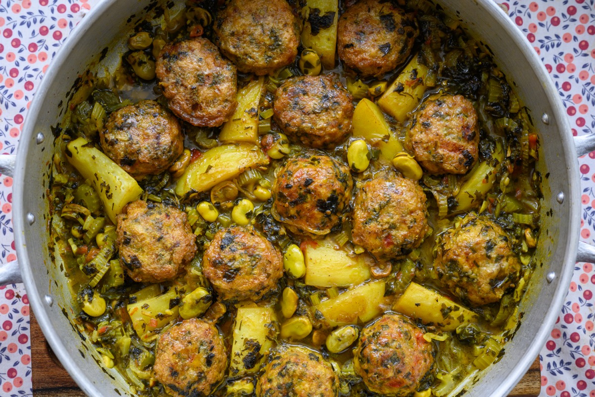 אלה הקציצות שלי לקולקציית אביב 2021, זה אולי הקציצות הטעימות ביותר שהכנתי השנה והכנתי. הן מושקעות, הן לימוניות, נפלאות וכל כך מזמינות. יש בהם עלי גפן טריים ופול ירוק טרי והמון סלרי ועשבי תיבול. זה ה- מתכון שלי למנה עיקרית לחג. כידוע לכם אני אוהבת מאוד לאפות את הקציצות, אבל הסיר הזה דורש טיפול קציצתי של ההיללולות, הן מקבלות את המרוקן טריט, יענו הגישה המרוקנית שאומרות, קודם נצפה אותן בקורנפלור ואז בלילת ביצים ומשם למחבת. הסיר הזה דורש ירוק קצת אחר, עלי גפן ופול ירוק, יש עכשיו בשווקים עלי גפן טריים מלטפים כל כך טעימים, הפעם הם יככבו בצורתן הקצוצה גם בקציצות וגם ברוטב הסיר. יש גם פול ירוק טרי. המנה הזו לא חונקת את הסיר עם פול, אלא מלטפת את הסיר מעדנות יחד עם כל ערוגת הגינה. ממש מחכה לראות את שמחת הסירים שלכם