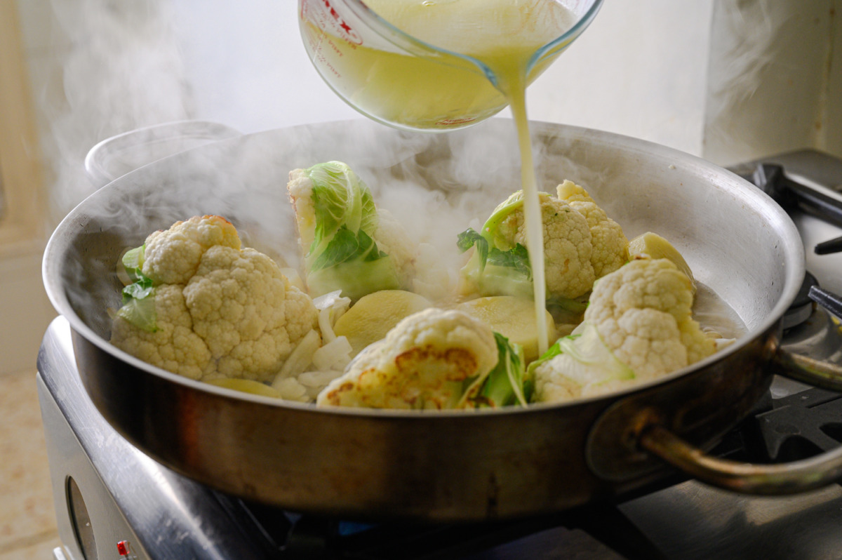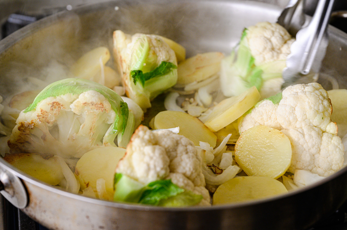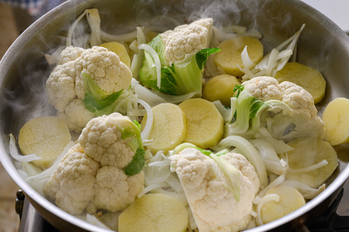 העניין עם ירקות מבושלים שצריך לבוא אליהם באהבה בכבוד, לראות שהכרובית רוצה להישאר מכוסה בעלעליה הכל כך טעימים, להסתכל על הסיר כמו תכשיט שאנחנו באים לצרוף והטעם שלו יצא סוף. זאת מנת ירקות שיכולה להיות מנה עיקרית נהדרת או תוספת ליד כל דבר שנגיש. זה הסיר שיתחסל ראשון. מבטיחה.