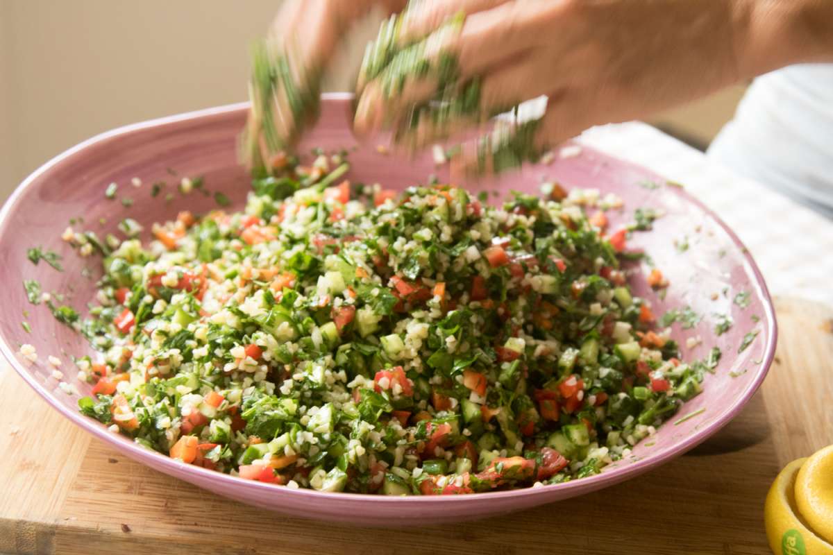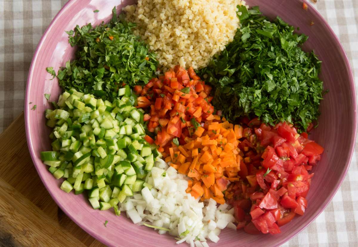 זו הורסיה שלי לטאבולה. בניגוד למקור, אני מוסיפה עוד ירקות חיים פריכים שנותנים קראנץ’. הטאבולה המקורי הוא בעיקר עשבי תיבול, בורגול ועגבניות.הכי חשוב בסלט הפשוט והמהמם, זה טריות הירקות, עשבי התיבול והחיתוך!!! כמה שיותר קוביות אחידות בגודלן ובקטנותן שיחקתם אותה: