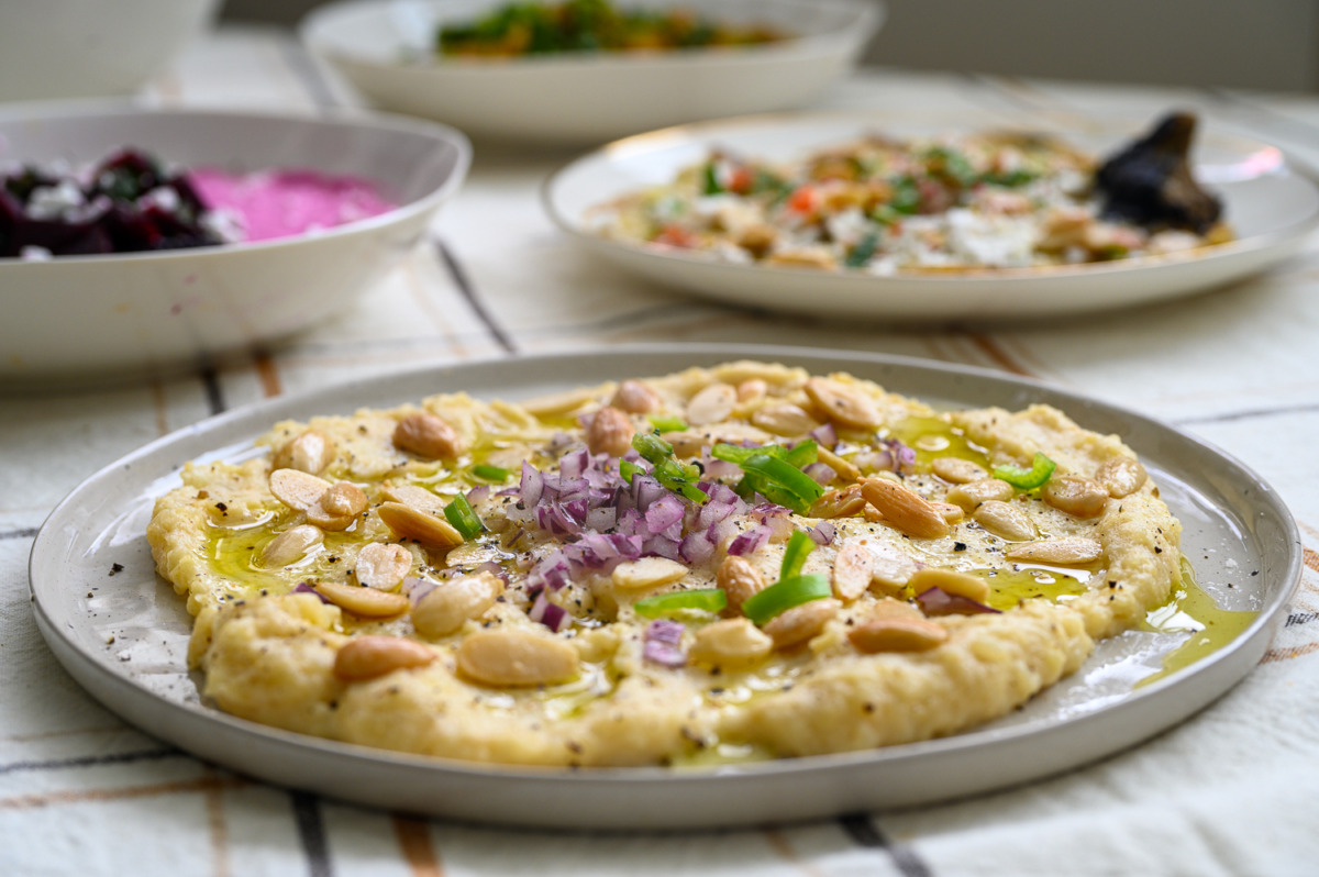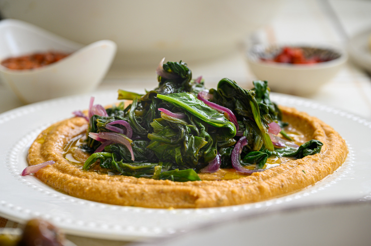 את הממרח הזה למדתי להכין מאמא שלי, הוא נמצא בספרים שלי – הפעם שידרגתי אותו מעט. הדלעת צלויה ולא מבושלת ויש לו כתר סלט נהדר של תרד. תהנו ממש