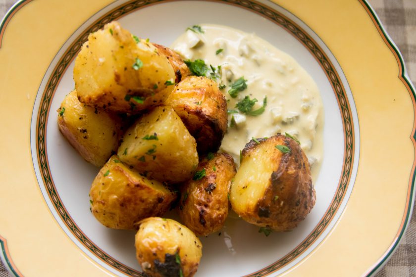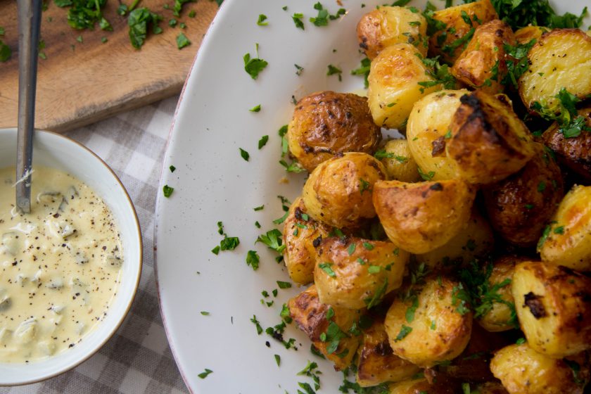 תפחי אדמה קטנים עם רוטב חזרת