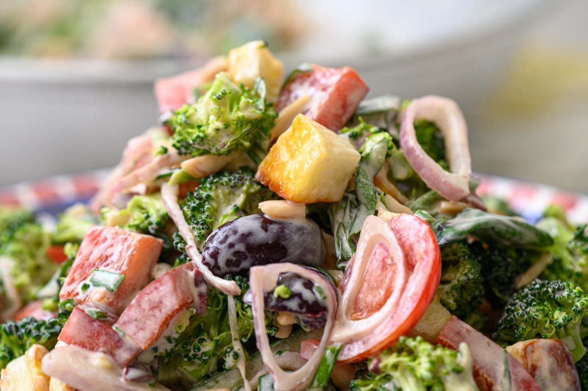 שימו בהולד את הסלט של אמא של יוסי (אותו סלט עם הברוקולי הטרי) ותגידו יאסו לסלט של אמא של יאניס. נו, לא באמת מכירה את אמא של יאניס, אבל בדמיוני אם הייתי אמא יווניה והיו נותנים לי גזע ברוקולי פריך וטרי ומצווים עלי להכין סלט. זה מה שהיה יוצא לי. וזה טעים כל כך. בטוחה שיהפוך לסלט קבע גם אצלכם. אצלנו במשפחה כשמישהו רוצה להפניק מישהו אחר הוא מכין לו סלט, אבל סלט לא באנלי, לא טריוויאל, אלא סלט אופטימל אידיאל עם טעם של הצרחות והשמחות. אז כשהכנתי את הסלט הזה למישהי שממש אוהבת ברוקלי ואסור לה סוכר. האתגר היה איך אכין סלט טעים טעים טעים אבל נטול (הרי ברוב סלטי הברוקולי החי יש המון סוכר) ואז עלתה דמותה של אמא של יאניס ומשם הכל זרם.