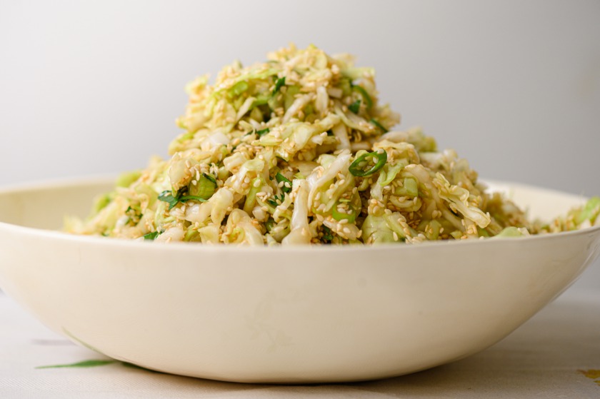 מי שרוצה להגיש עם עוף. – 200 גרם חזה עוף ממולח ומפולפל משני הצדדים, במחבת עם מעט שמן נטגן היטב – כל צד כ-5 דקות. נחתוך לרצועות דקיקות ניצוק עליהן כף רוטב סויה ונוסיף לסלט. או בסיר מלא מים רותחים ומומלחים נכניס את חזה העוף עם מיץ לימון וגבעול נענע עד שמוכן כ-5 דקות. נפרוס נפלפל ונמליח.