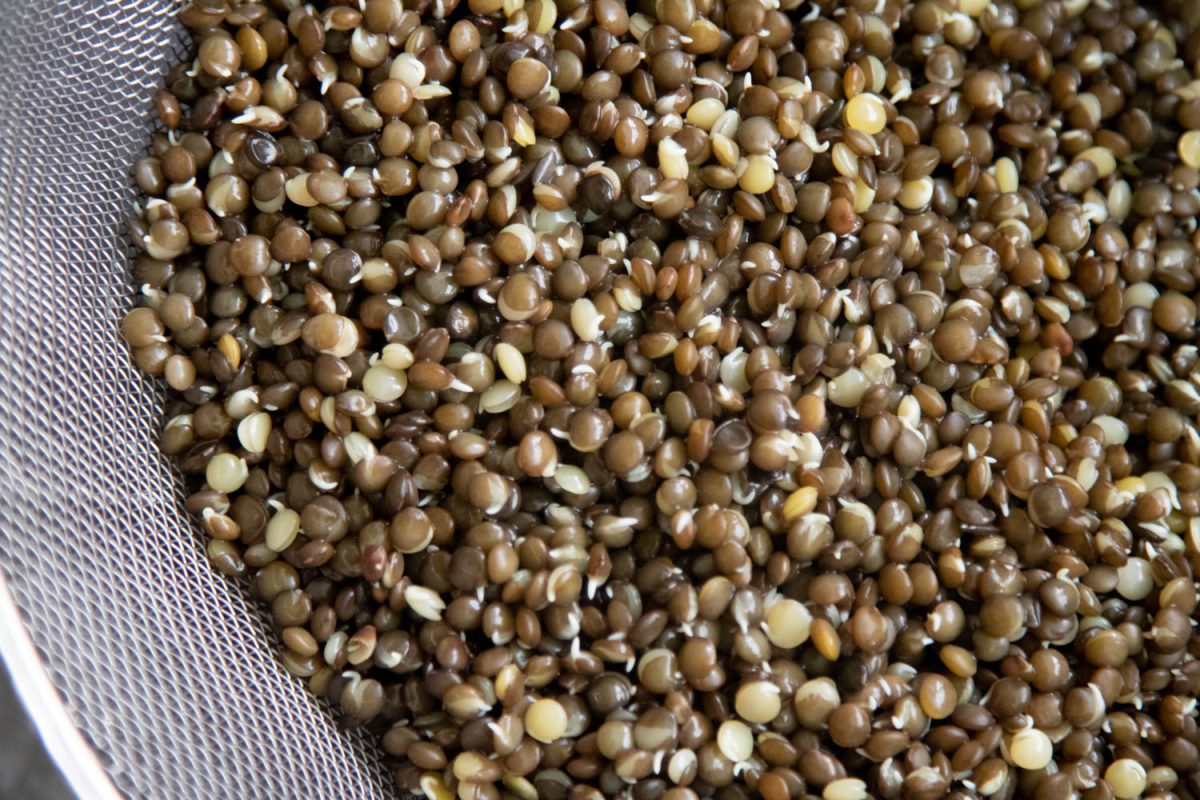 1. הנבטה קלה – אחרי שהשרו את העדשים במשך 6-10 שעות, נסנן אותן מהמים, נשאיר את העדשים במסננת מכוסים במגבת לחה שישנו לילה. בלילה קורה פלא קפיצת הגדילה גם להן והן מניצות ומנביטות.