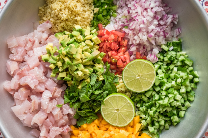 1. נקלף את הסלקים שלנו, ונחתוך אותם לקוביות מדוגמות קטנטנות בגודל חמוציות. נערבב את הסלק עם שמן הזית, הדבש, חצי כפית מלח וחצי כפית פלפל שחור.