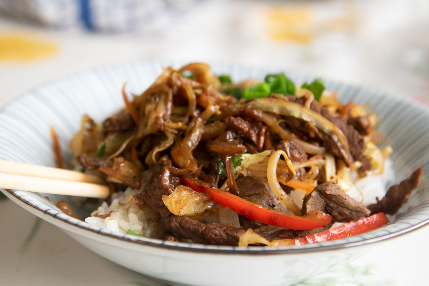 3. נקצוץ את בשר הפלפל והעגבניות איך שבא, נוסיף, אורז, פטרוזיליה, נוסיף את הרוטב, נערבב