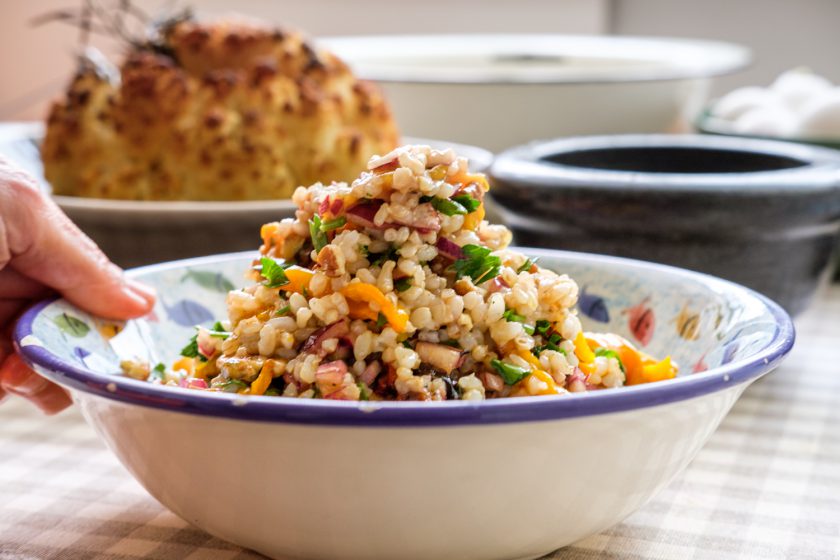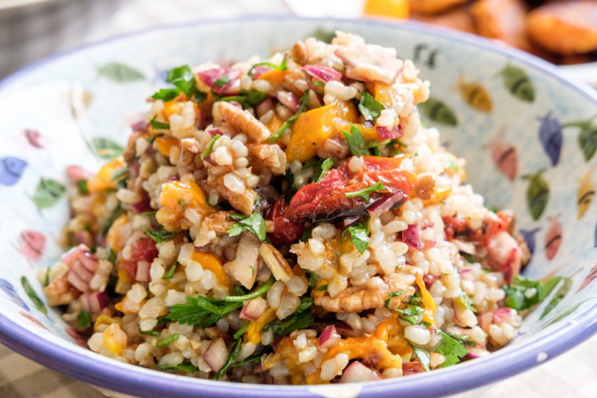 הסכיתו רגע, מכירים את זה שנשאר לכם אורז מאתמול ואין מצב שנזרוק, זה כואב בלב, אז מה עושים משדכים לו כמה פלפלונים שזרקנו לתנור אפשר עם חופן עגבניות תמר ויוצא סלט כזה נהדר. באחריות.
