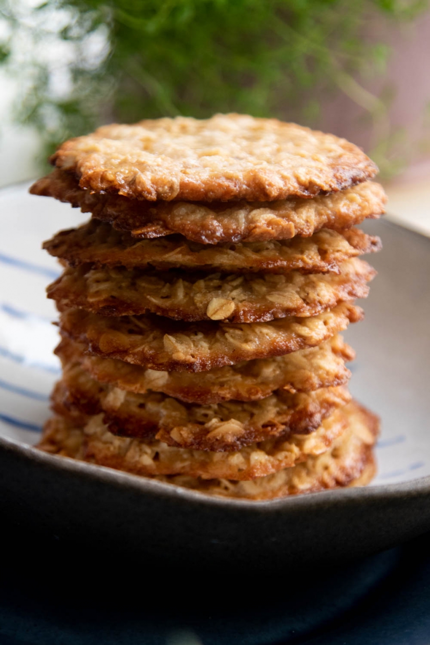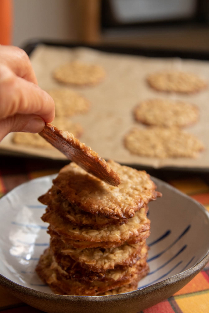 באמריקע קוראים אותן לייס קוקיס,עוגיות תחרה, כי הן דקיקות, יפות ושקופות כמו גרטה גארבו בפיפטיז. יש שמגדילים ועושים אותן אף יותר דקיקיות, אני אוהבת אותן ככה, כמו שג’ולס מכינה, כל כך מעולות וקלות, בלי ברדק, בלי כובד של קמח. ככה נטורל