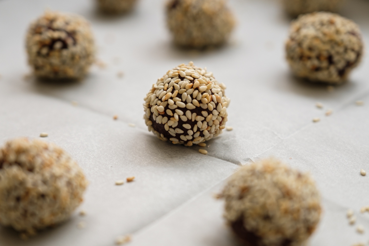 ונצפה בשומשום. נניח בתבנית את הכדורים