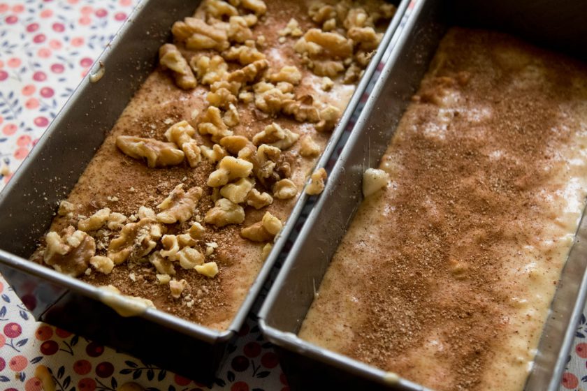 3. תבנית משומנת היטב – איזה שרוצים העיקר שהעוגה תגיע עד ה3/4, נאבק בסוכר קינמון, אפשר גם באגוזי מלך (לא חובה)