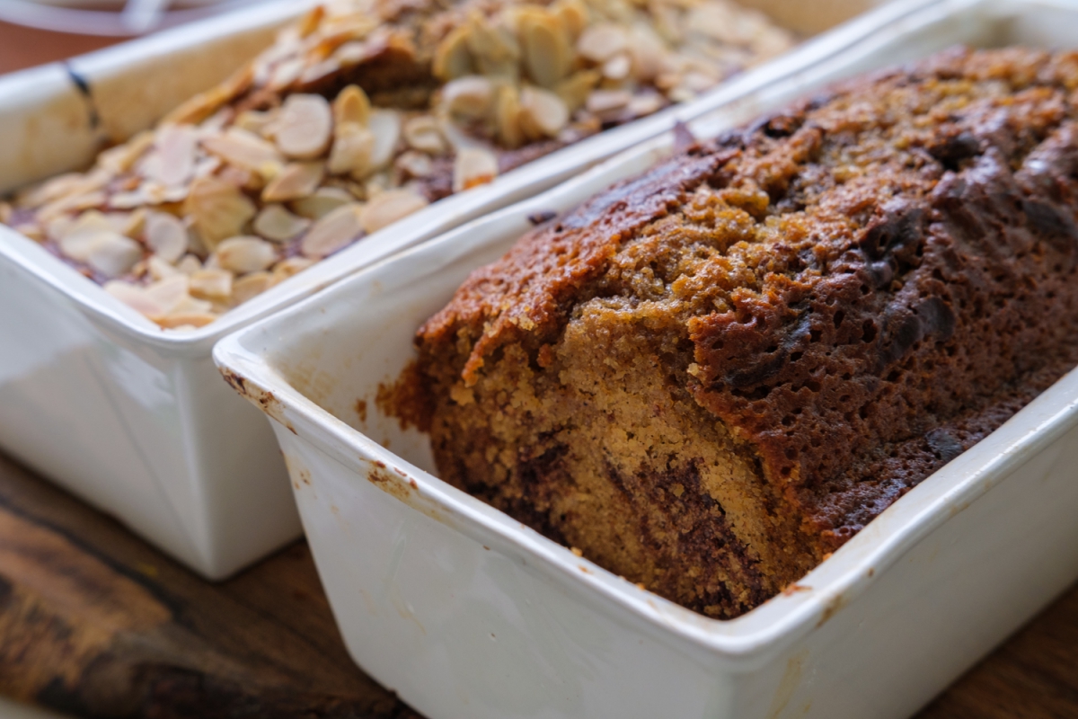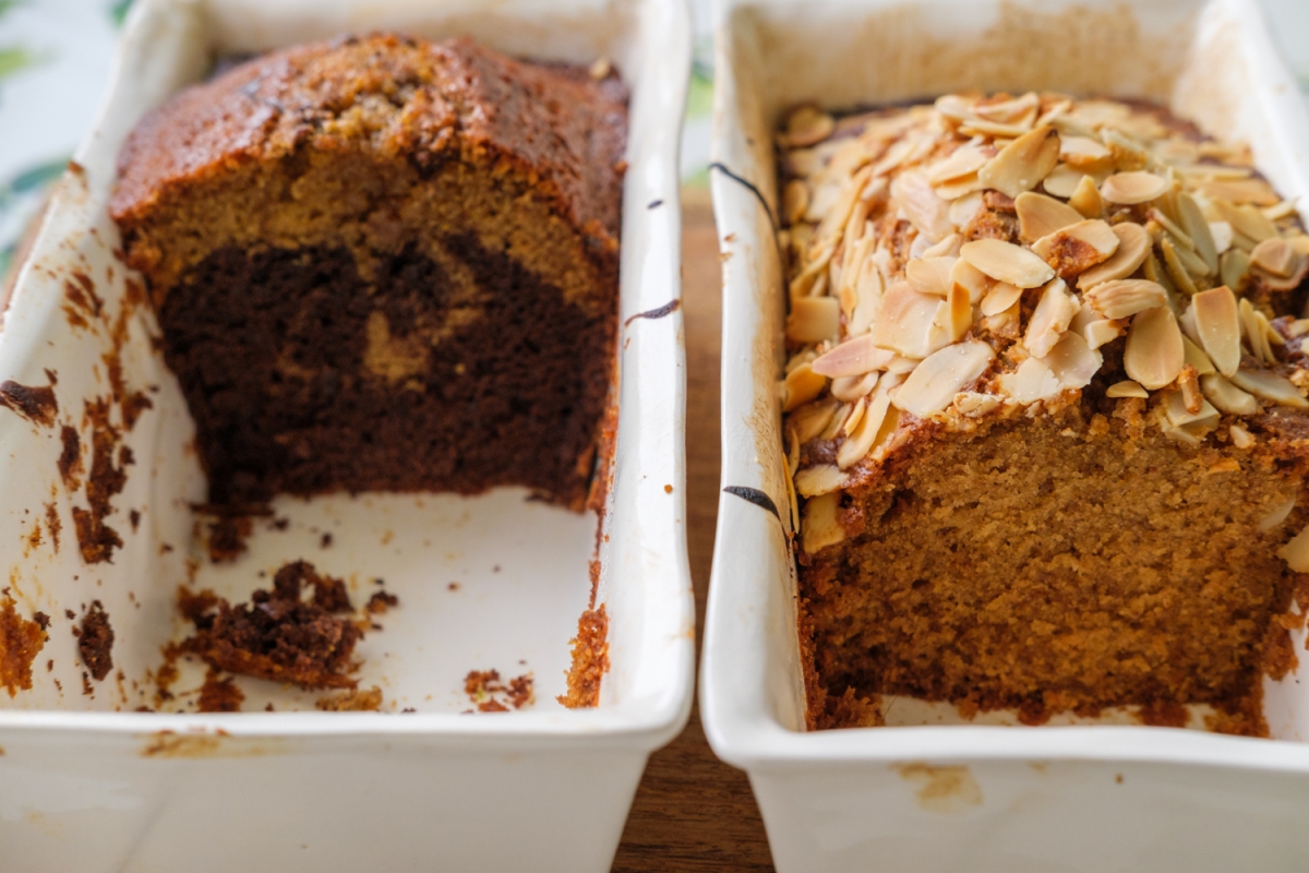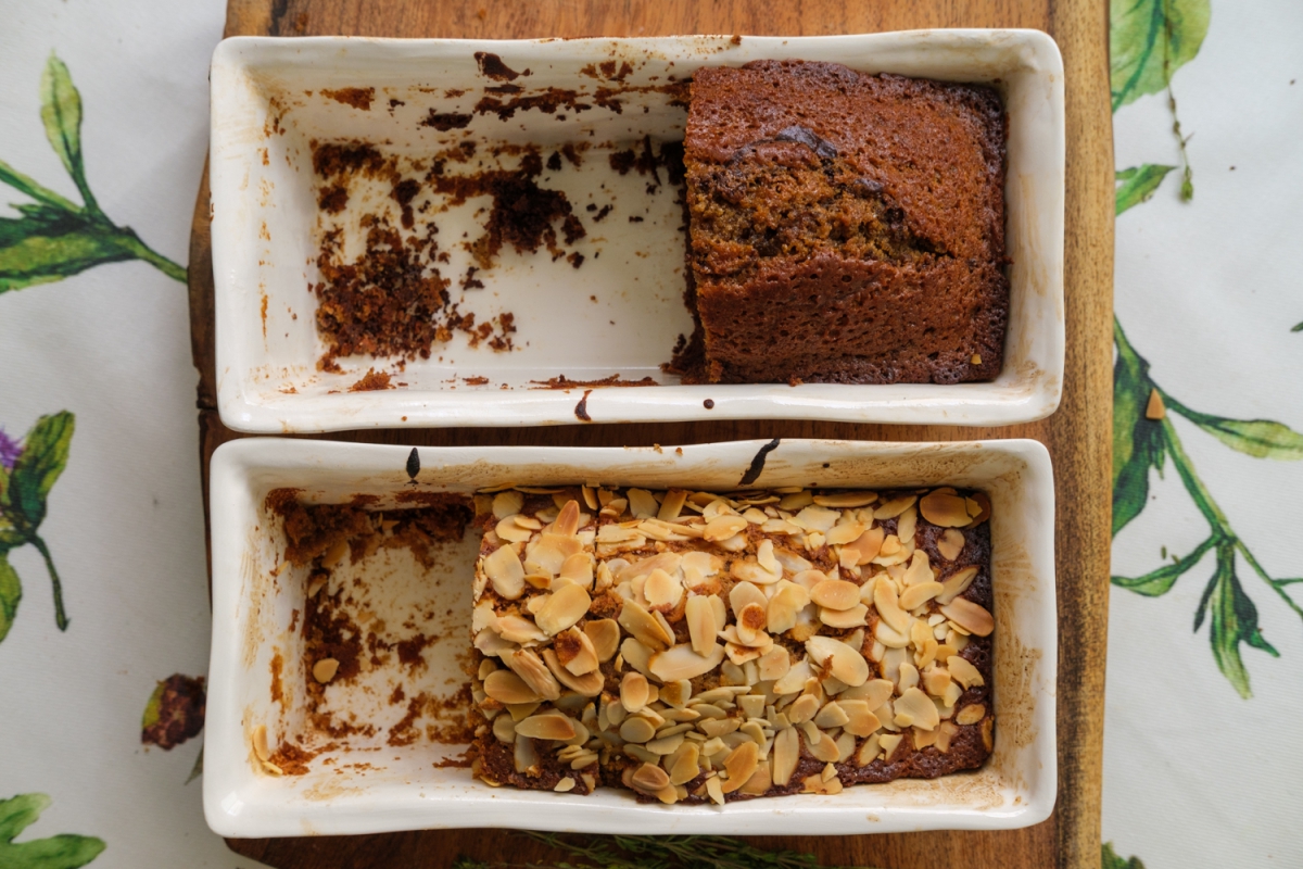 ננפה קמח, אבקת אפיה, סודה לשתיה, מלח, כפית קינמון ותערובת תבלינים. זהו זה, העוגה מוכנה. אפשר לאפות באינגליש גדולה, או תבנית עגולה 24, או שתי אינגליש קייק קטנות ואפשר לחלק את הבלילה לשתי עוגות אחת עם שקדים ואחת שיש שוקולד כמו כאן: