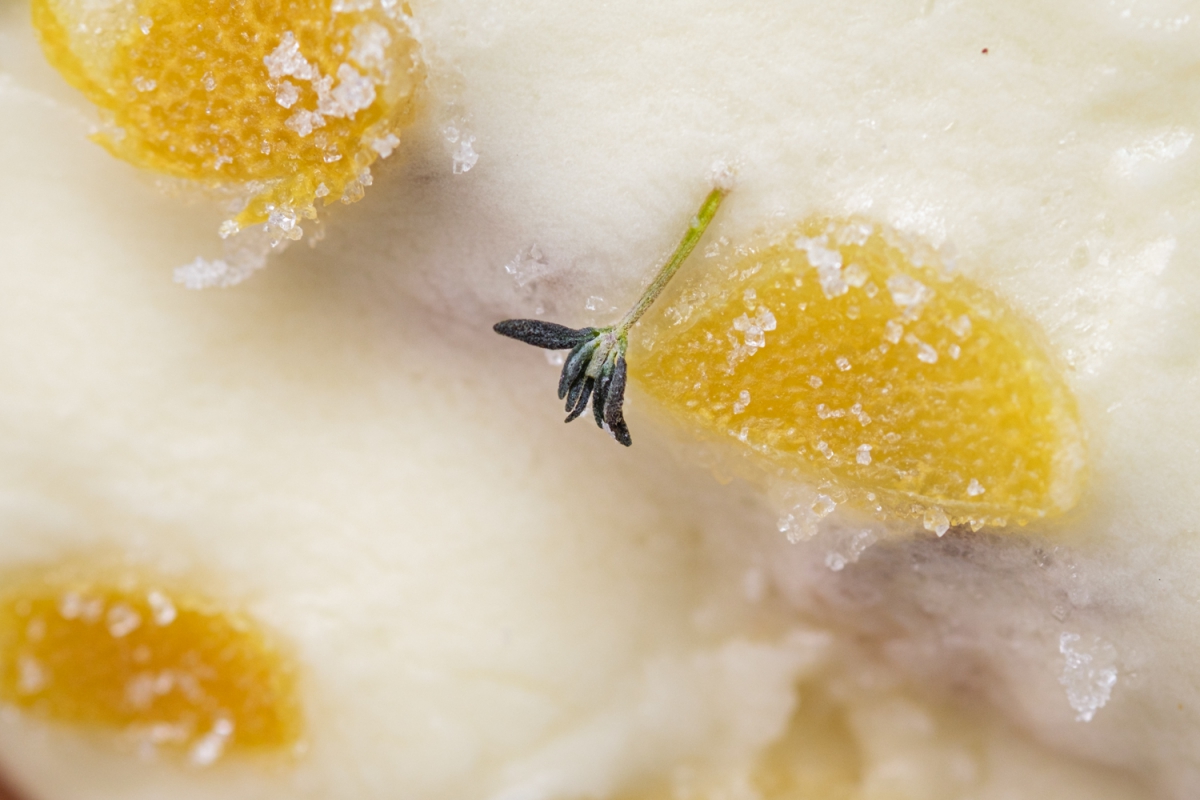 7. לקישוט: נגלף לימון לקליפות דקות, נכניס לקלחת קטנה עם 2 כוסות מים, נבשל חצי שעה, נוסיף כוס סוכר נמשיך ונבשל עד שהסוכר נמס ומבעבע כ-רבע שעה. נוציא את הקליפות לנייר סופג,נגזור או נחתוך את הקליפות לצורה לימונית, נצפה בסוכר ונשבץ לימונים קטנים על הגלייז, נוסיף עלי תימין. כמה יפה