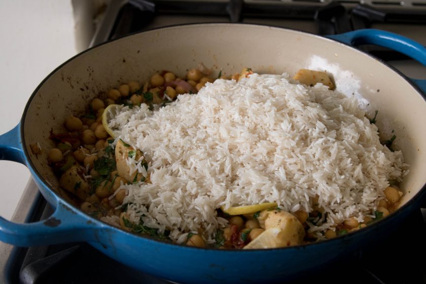 3 כוסות אורז בסמטי שטוף היטב ומושרה לפחות חצי שעה.