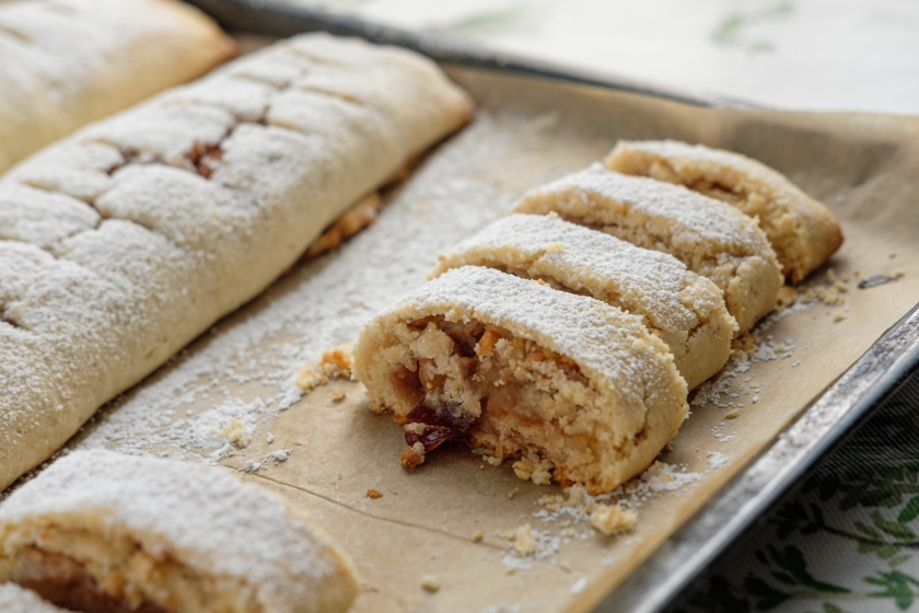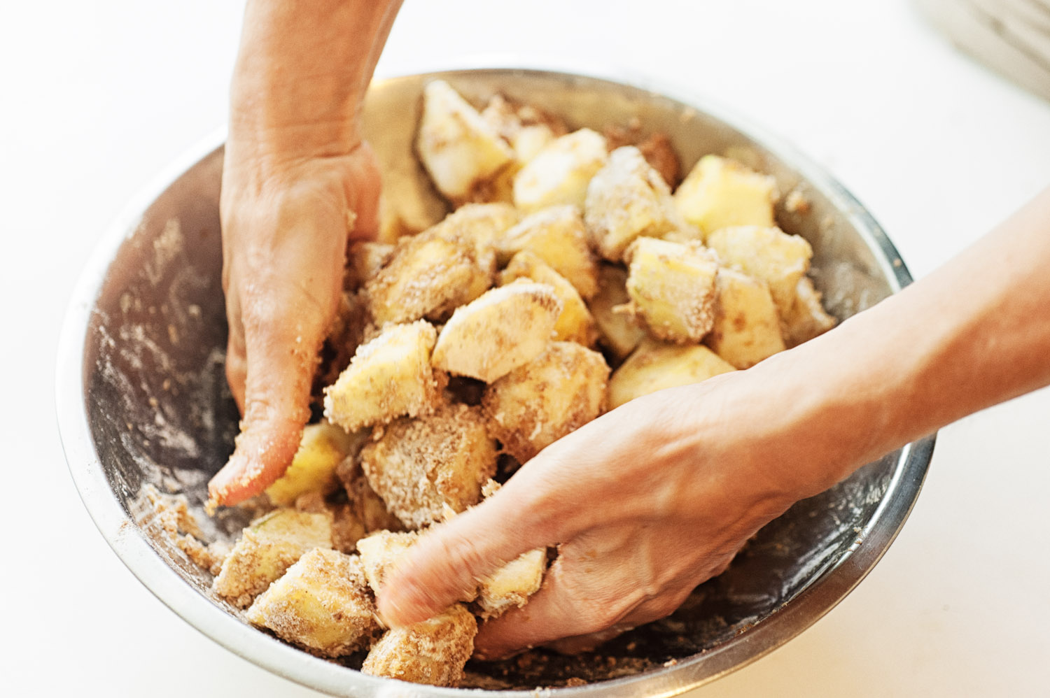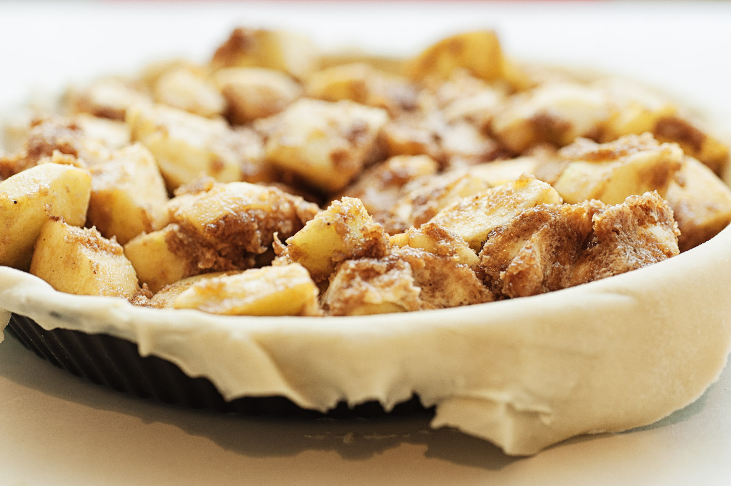 על עלה בצק מרודד, מניחים את התפוחים החתוכים