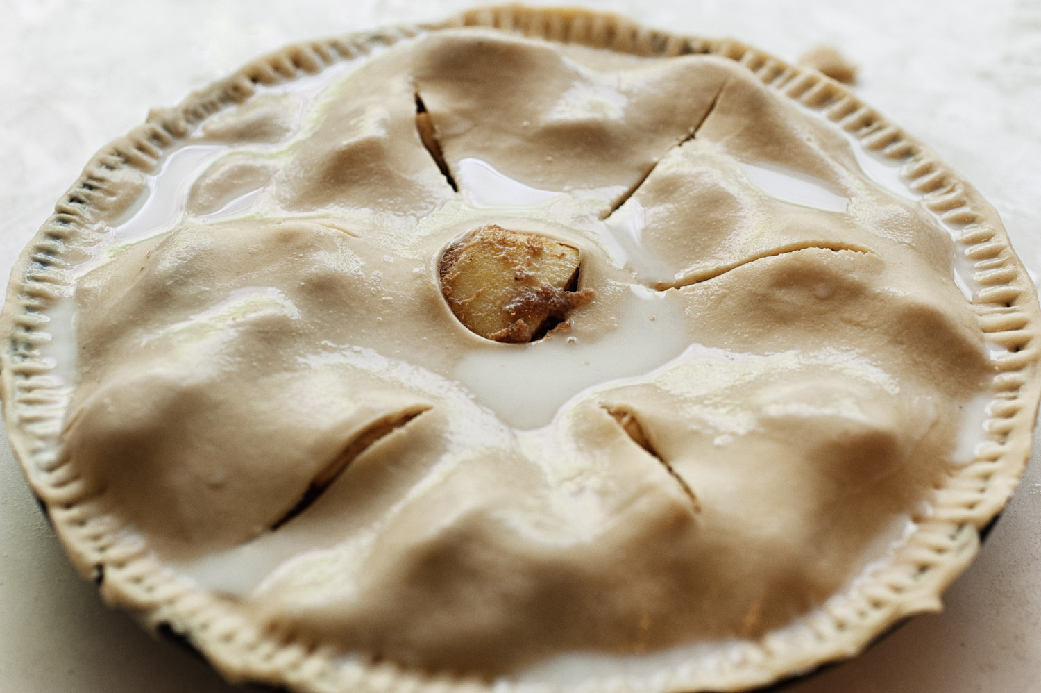 למרוח חלב על הפאי ולפזר מעל כשתי כפות סוכר.